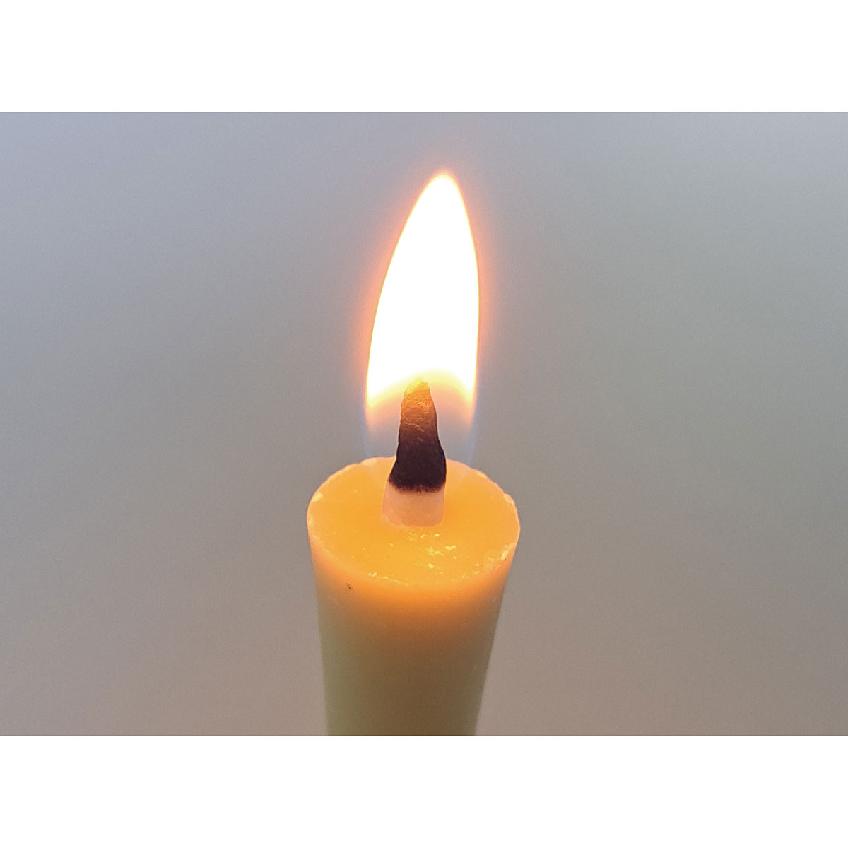 和ろうそくは芯が太く火力があり、夕日のようなオレンジ色になります。また、芯の内部が空洞なので空気が振動する時に風が吹いていない状況でも炎が揺らめいて荘厳な雰囲気があります。