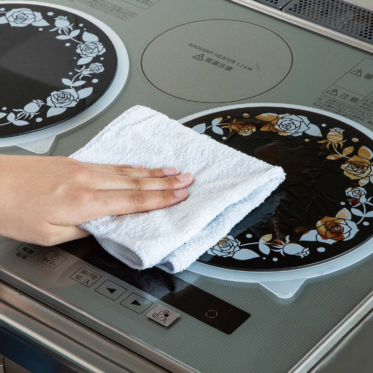 IHクッキングヒーターコンロに置くだけで、汚れやキズををしっかりガード。おしゃれで扱いやすい耐熱ガラスタイプで、ズレを防ぐシリコンリング付き♪汚れやすいIHも、このアイテムでサッと拭いていつでも清潔に!光を通す素材なので、通電ランプもしっかり見えるのも嬉しいポイントです☆