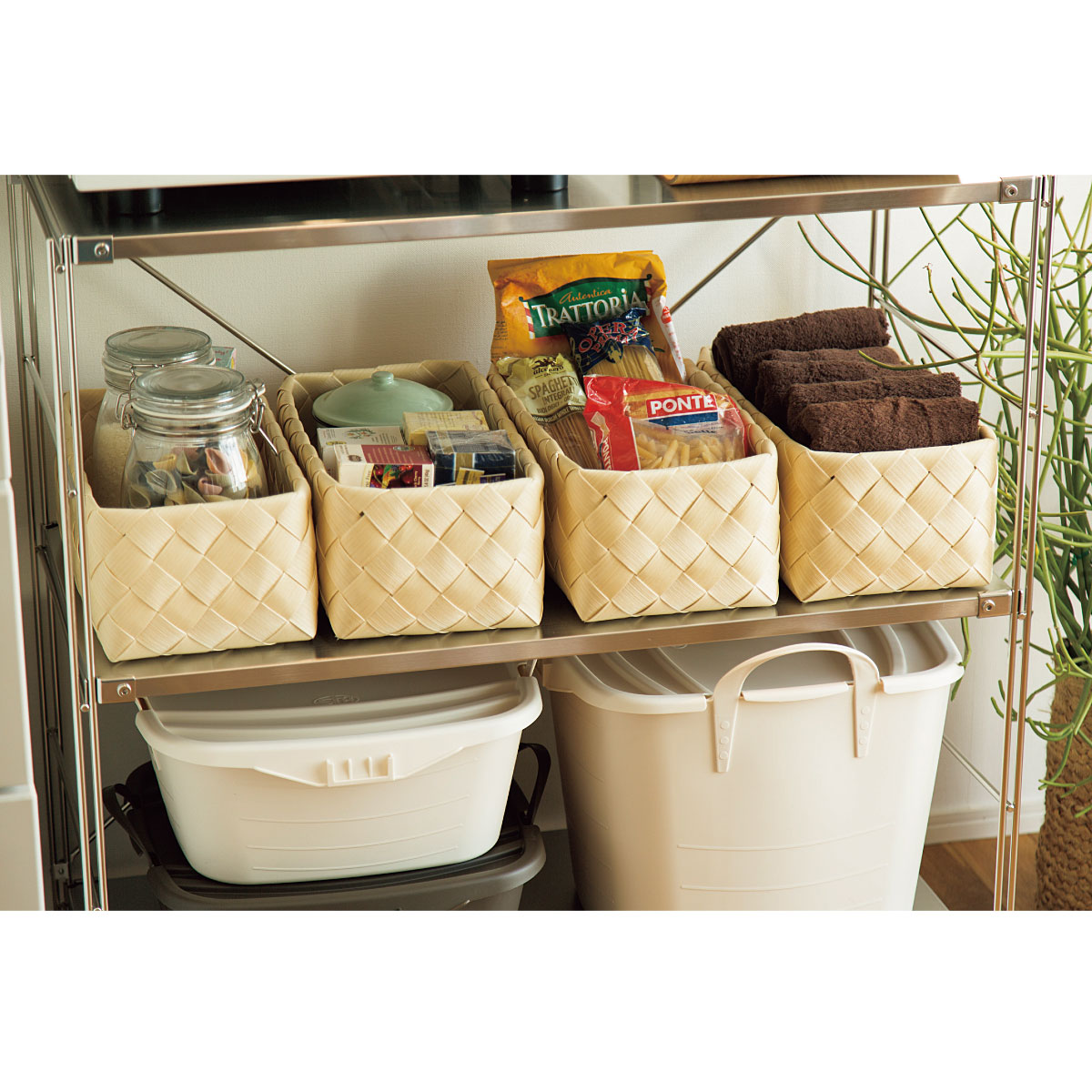 衣類やタオル、本や新聞、お菓子や食材のストックもポイポイッと入れるだけですぐスッキリ!