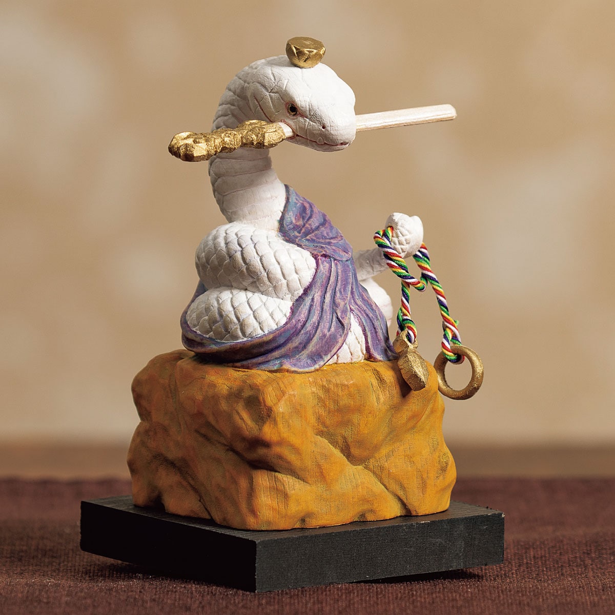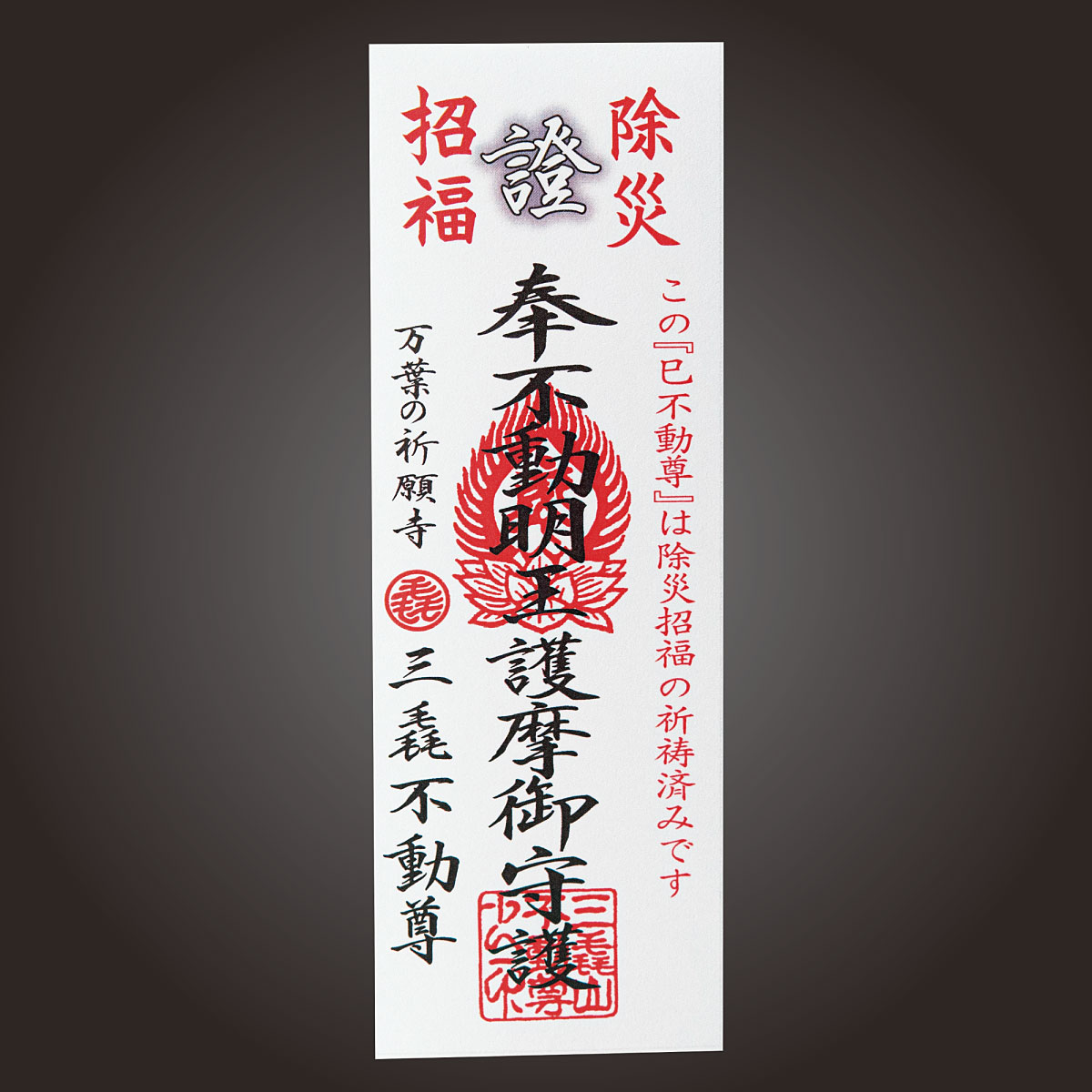 力強くも、どこかかわいい巳の不動尊…!「その年の干支飾りを家に招くと一年の幸せに通じる」という言い伝えから、明るく希望に満ちた年を願って。万葉の祈願寺として篤い信仰を集める三毳不動尊の御住職による、除災招福のありがたい御護摩祈祷を賜ってのお届けとなります。