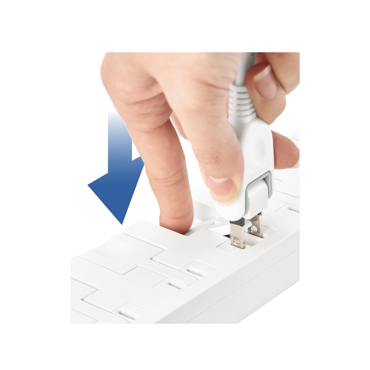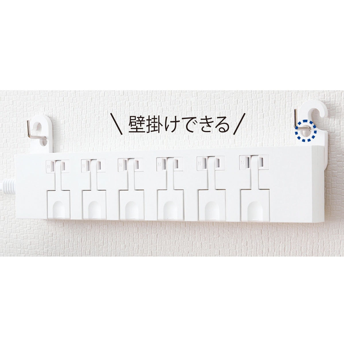 押すだけ簡単!片手でプラグが抜ける6個口の電源タップです。これさえあれば、プラグを抜くときの小さなストレスから解放できます♪吊り穴・フック付で床面以外にも設置して使え、座ったままでの抜き差しにも便利です。