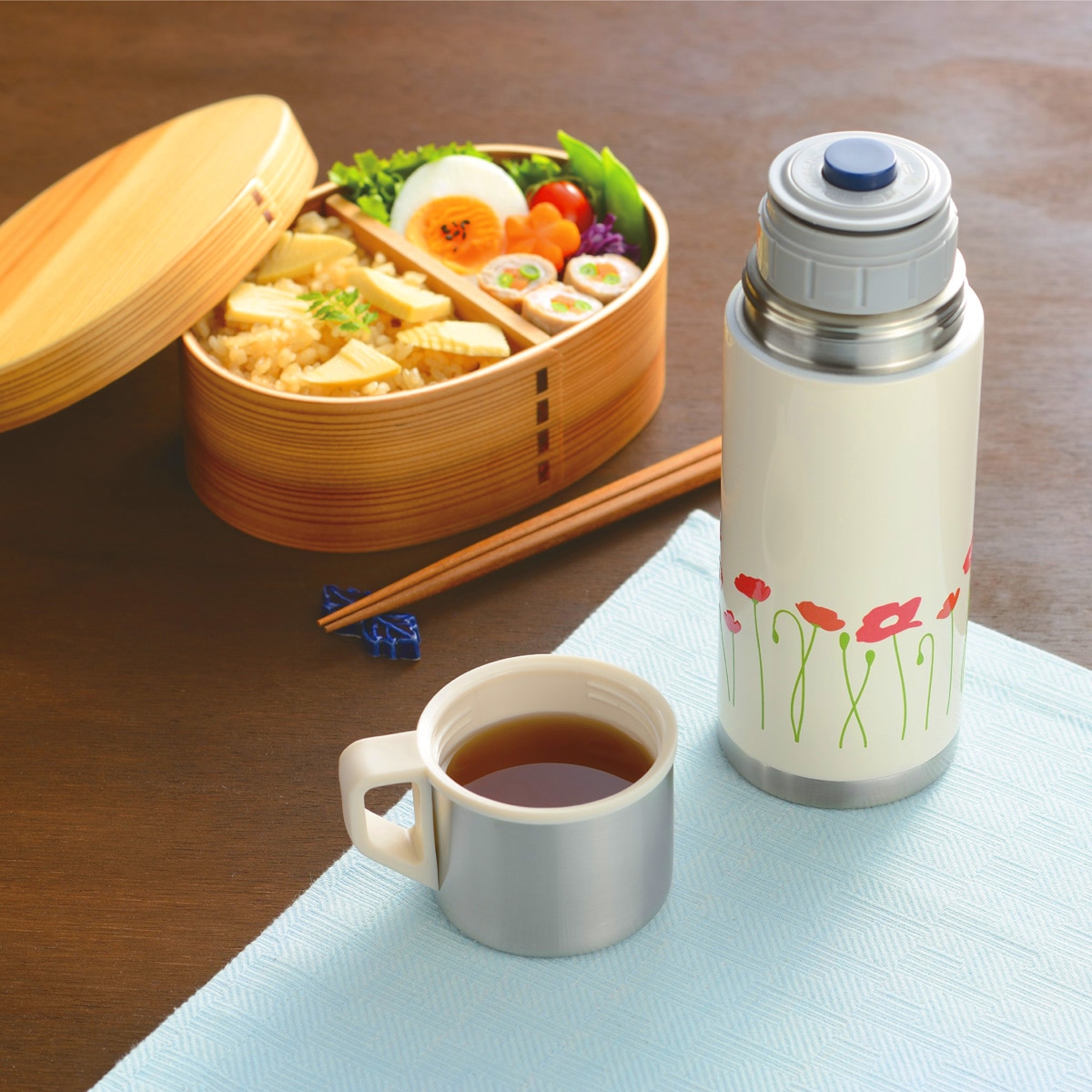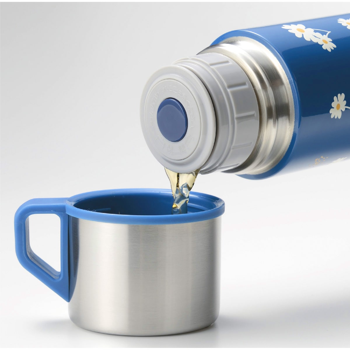 食事の時や温かい飲み物の時に便利なコップ付きのボトル