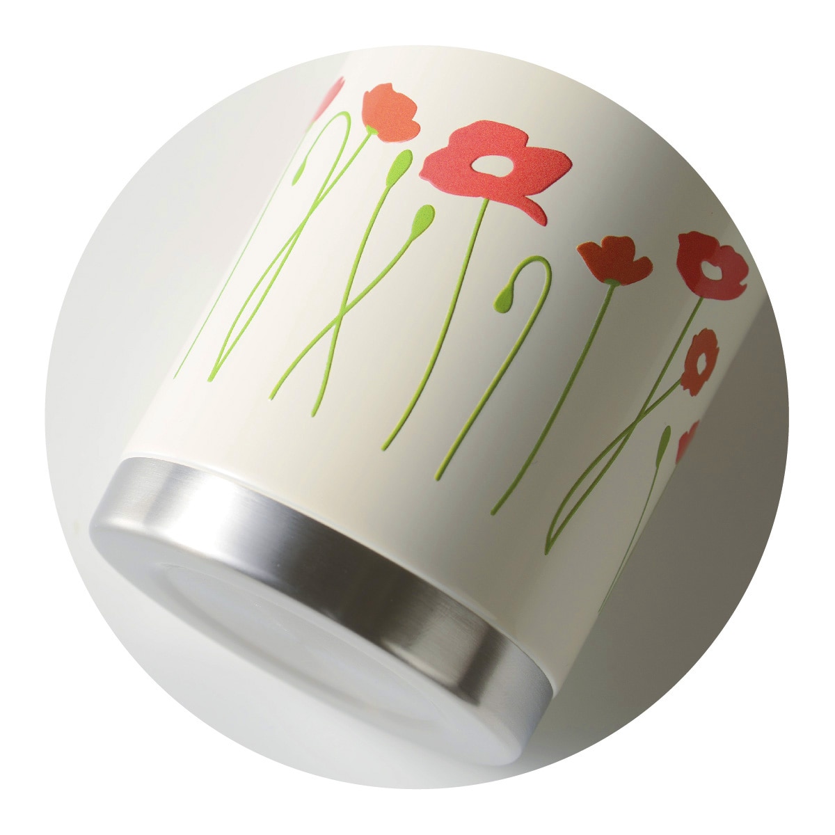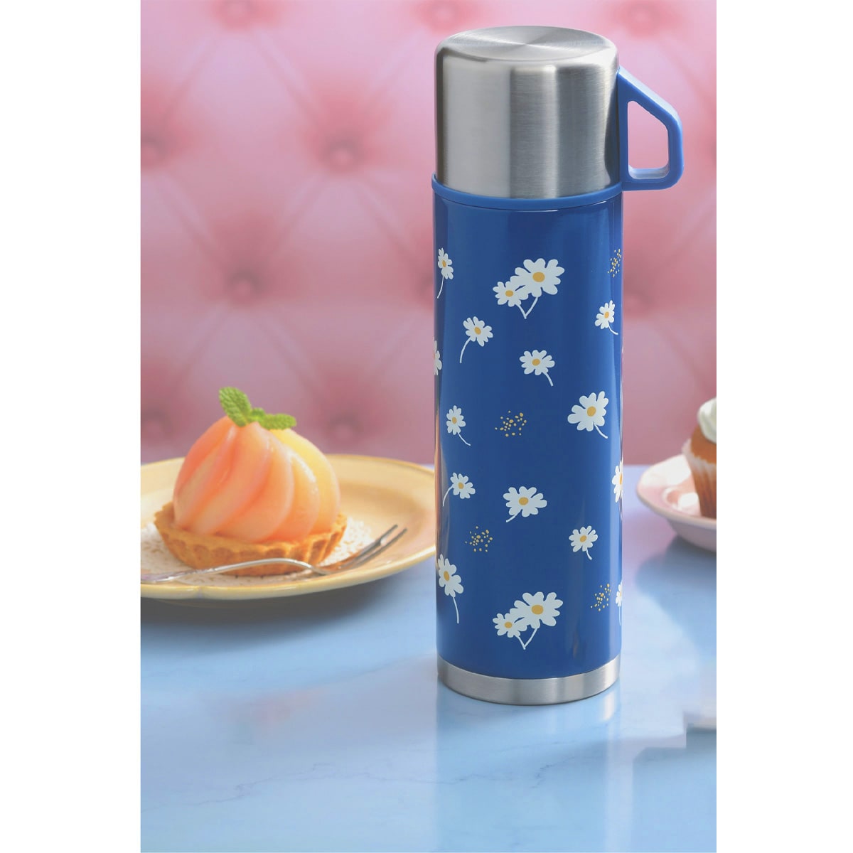 レトロ柄がかわいい、保冷保温のコップ付きボトル
