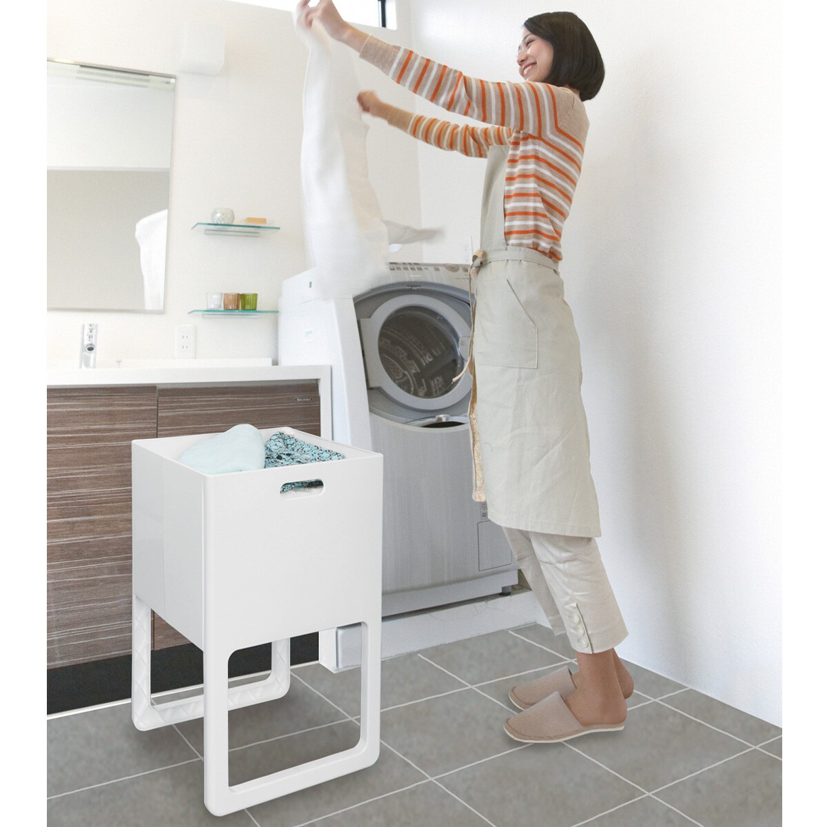 【腰を屈めず作業できる!】脚付きだから低くかがむことなくものを取ることができる!毎日のお洗濯がグッとラクに♪●畳んで持ち運びもラクラク!持ち手付き!●パッと開いてすぐに使える●使わない時はコンパクトに!すき間収納ができる
