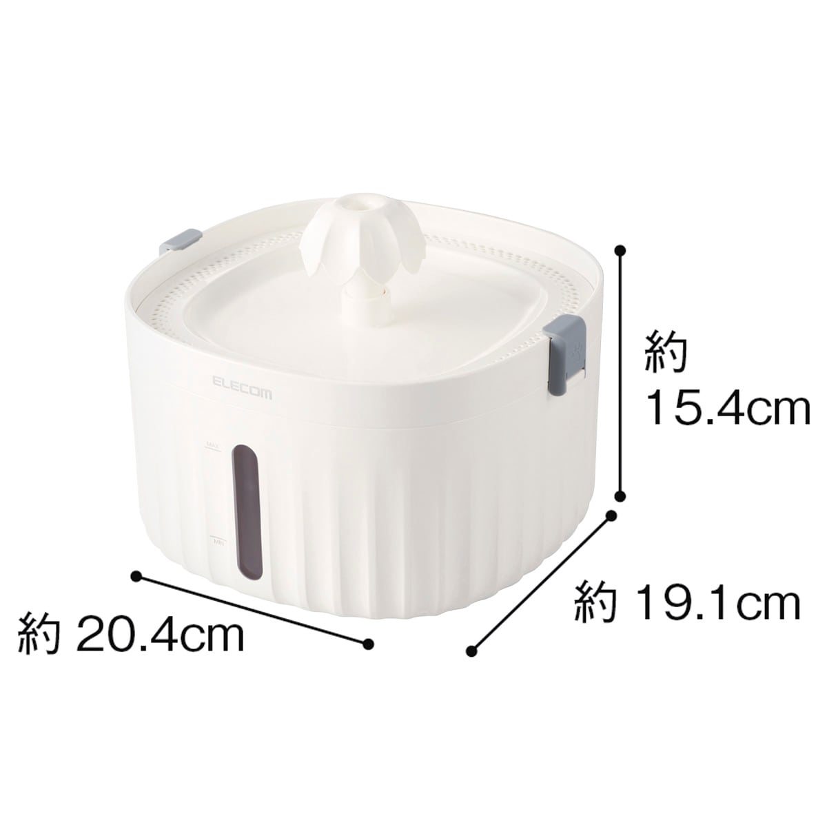 低消費電力でお財布にやさしい!24時間つけっぱなしでも、電気代はたったの約0.6円。1カ月使用でも約18円のうれしい省エネ性能♪※1kWh31円で計算しています。こちらの電力量料金はあくまで目安です。■サイズ(約cm)/幅20.4×奥行19.1×高さ15.4 ■重量/約0.6kg(本体のみ) ■電源:AC100~240V DC5V1A ■消費電力/0.6W ■最大容量/約2L ●セット内容/専用ACアダプター、専用給電ケーブル(ケーブル長:約1.4m(コネクター部含まず))、ポンプ用予備フィルター、お手入れブラシ、お手入れピンセット、お手入れスポンジ、サイドストッパー×2組(1組は予備)●中国製【返品・交換不可】 【保証書付1年間】