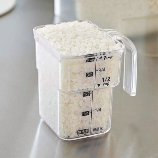 【お米を最後までらく~にすくえる】付属の計量カップが底の形にピッタリフィット!