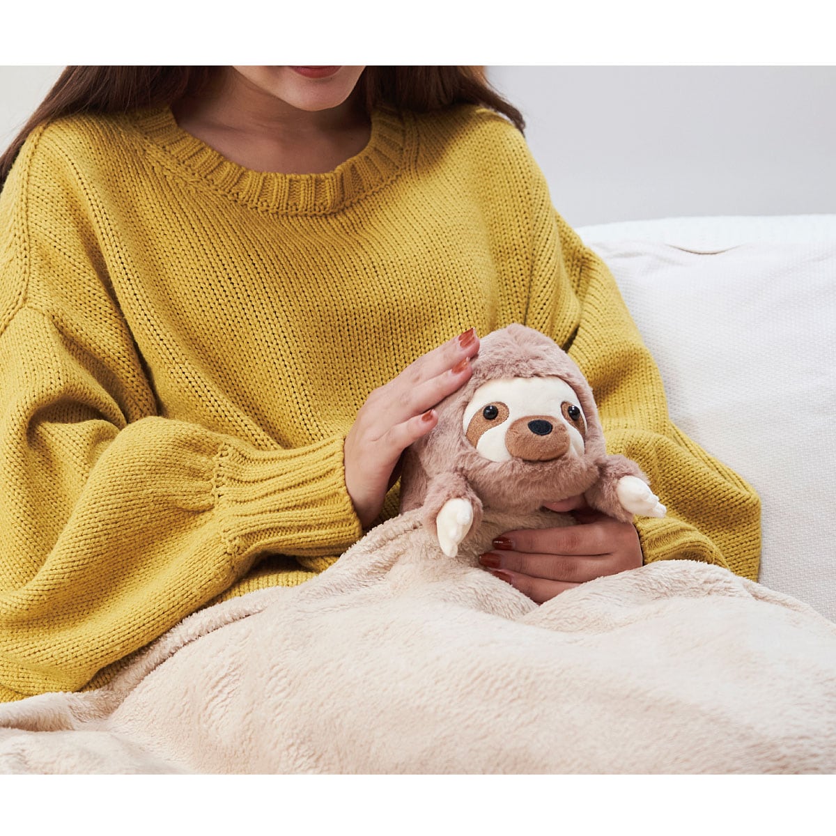 ■[本体]ポリエステル、ABS樹脂 [ビーズ袋]ポリエステル、シリカゲル ■サイズ(約cm)/[A:ナマケモノ]18×18×高さ23 [B:ハチワレ]18×18×高さ27●中国製