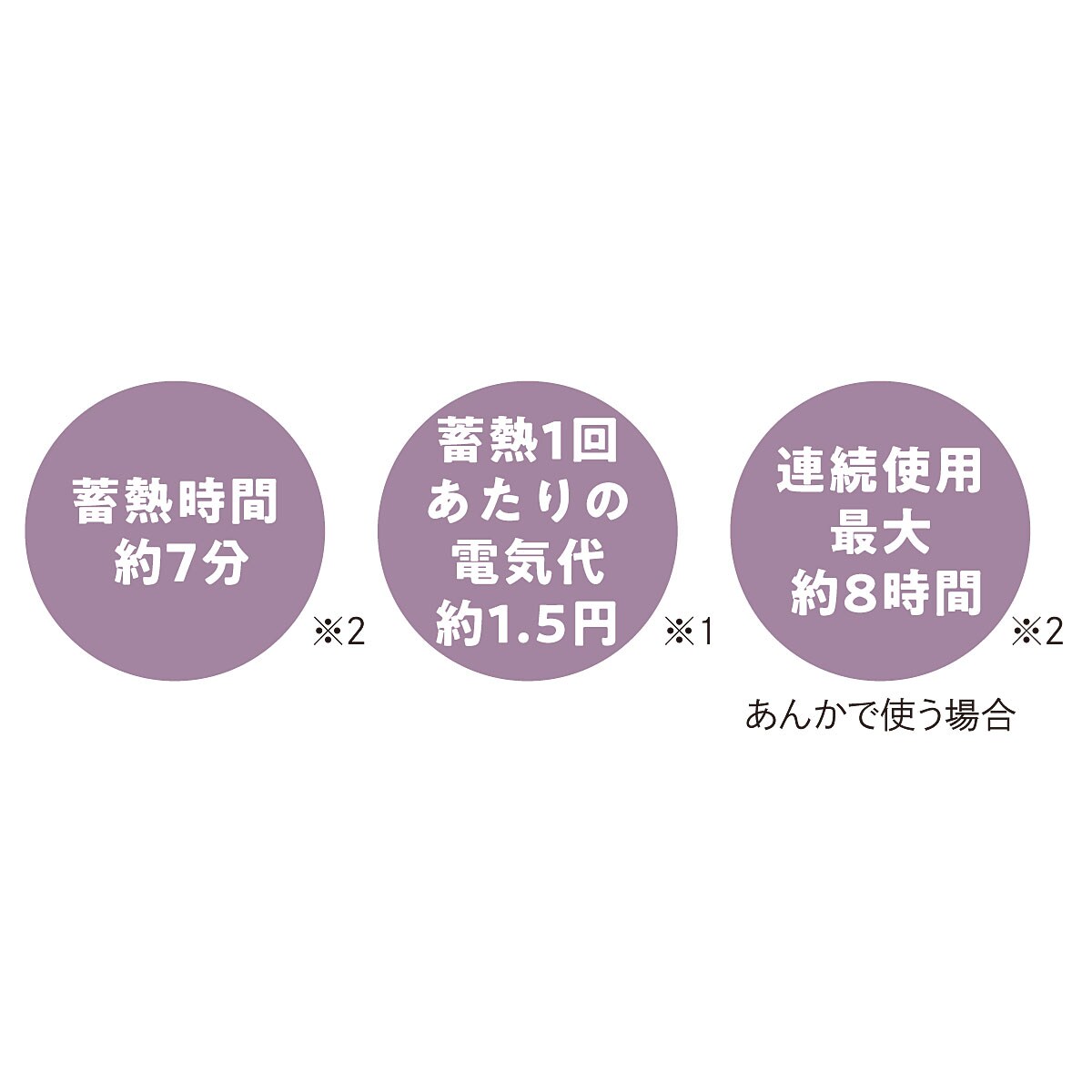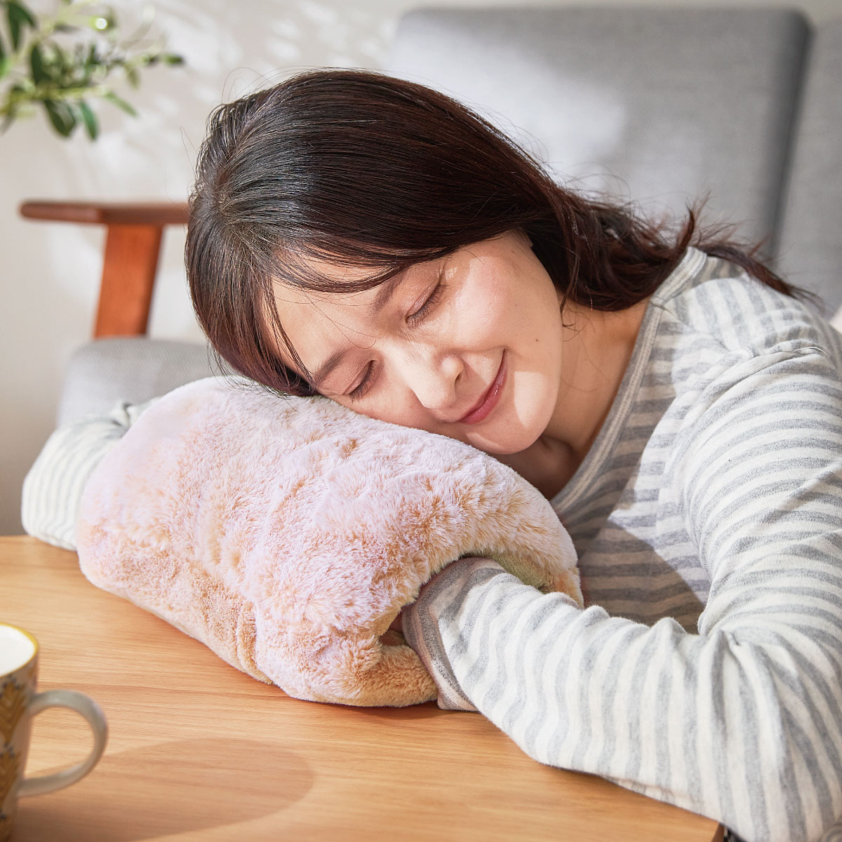ラビットファー調にうっとり!コードレスで使える蓄熱式湯たんぽ。蓄熱1回あたりの電気代目安は約1.5円(税込31円/kWhで算出)。布団内であんかとして使用する場合は、連続最大約8時間(周囲の環境温度によって異なります)使用可能。繰り返し約500回使えます。手が入れられてふわふわであったかい!