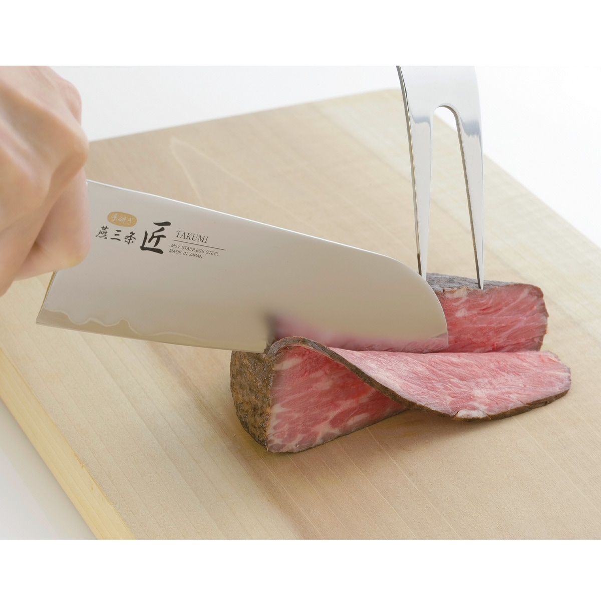 【鋭角仕上げだから軽いちからで切れる!】・鋼並みの硬度の刃を間にはさんだ割り込み包丁・刀厚を薄く鋭角にし、厳しい切れ味審査を通った物のみ出荷!長く愛用できる丈夫な作り!柄は手になじみやすく水に強い積層強化木を採用しました。