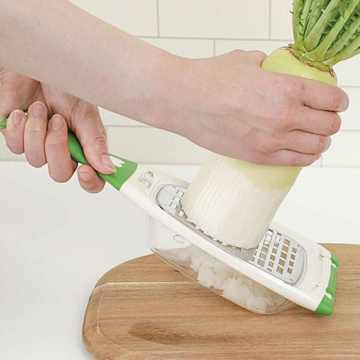 軽い力で素早く大根おろしが作れ、両面仕様で「粗め」「細かめ」の2種類が楽しめます。独自形状の歯によりキメ細かいすり上がりとなり、まるで雪のようなふわふわ食感の大根おろしが出来上がります。