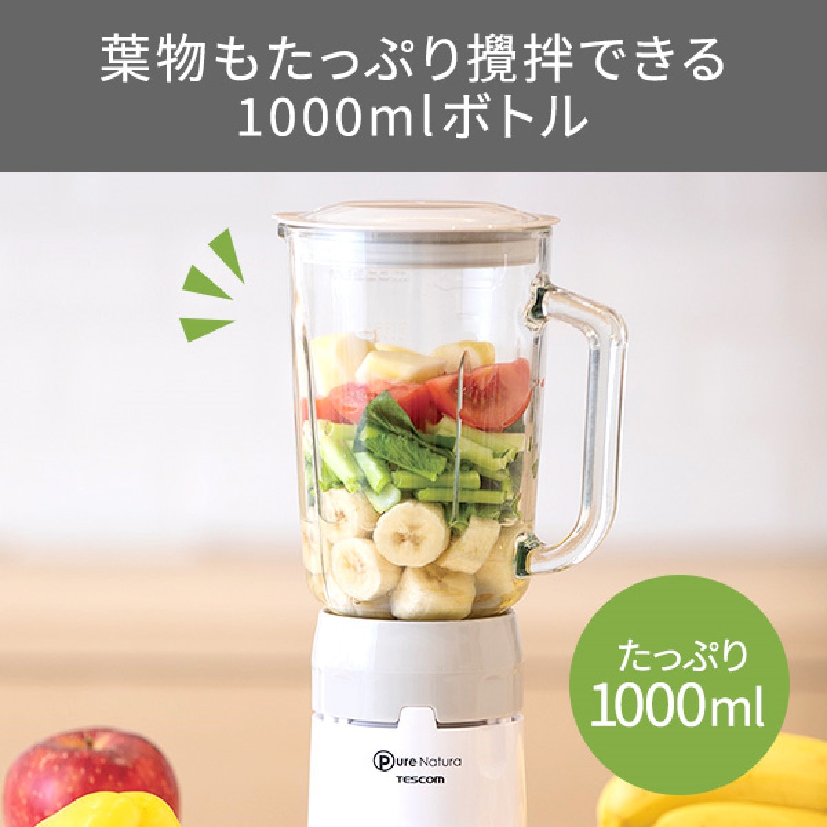 家庭で作った氷も細かく砕ける大型刃&大容量1000mLボトルのミキサー。