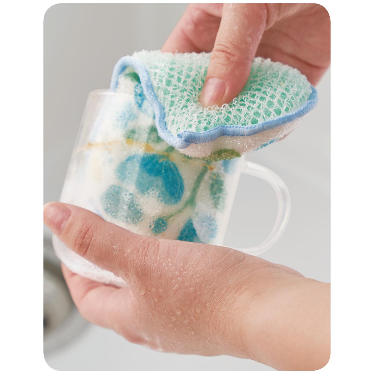 セシールオリジナルキャラクター「のるニャン」がデザインされたキッチンスポンジです。汚れによって洗い分けできる2つの表面素材。パイルメッシュ面は泡立ちがよく、油汚れをしっかり落とします。マイクロファイバーとフィルム繊維の面は、茶渋やこびりついた頑固な汚れもスッキリ! 壁に貼るだけでくっつく便利なキャッチフック付きで使わないときはサッと干しておけます。シリーズで揃えれば、毎日の家事がちょっとだけ楽しくなるかも♪