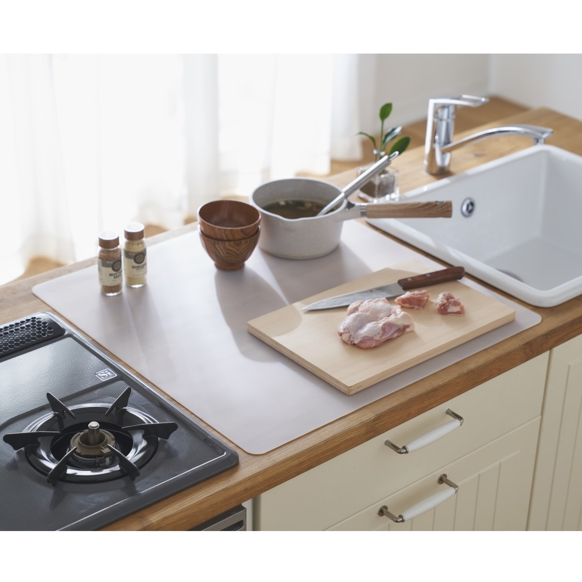 調理台をキズや汚れから保護するシリコン製のマット。調理中の熱いお鍋も一時置きできるので安心。適度な厚みで、調理器具や食器を置いた時の「ガシャン」という音も軽減してくれます。汚れてもサラっと拭けるのでお手入れラクちん。ご自宅の調理台サイズに合わせて、カットOK!