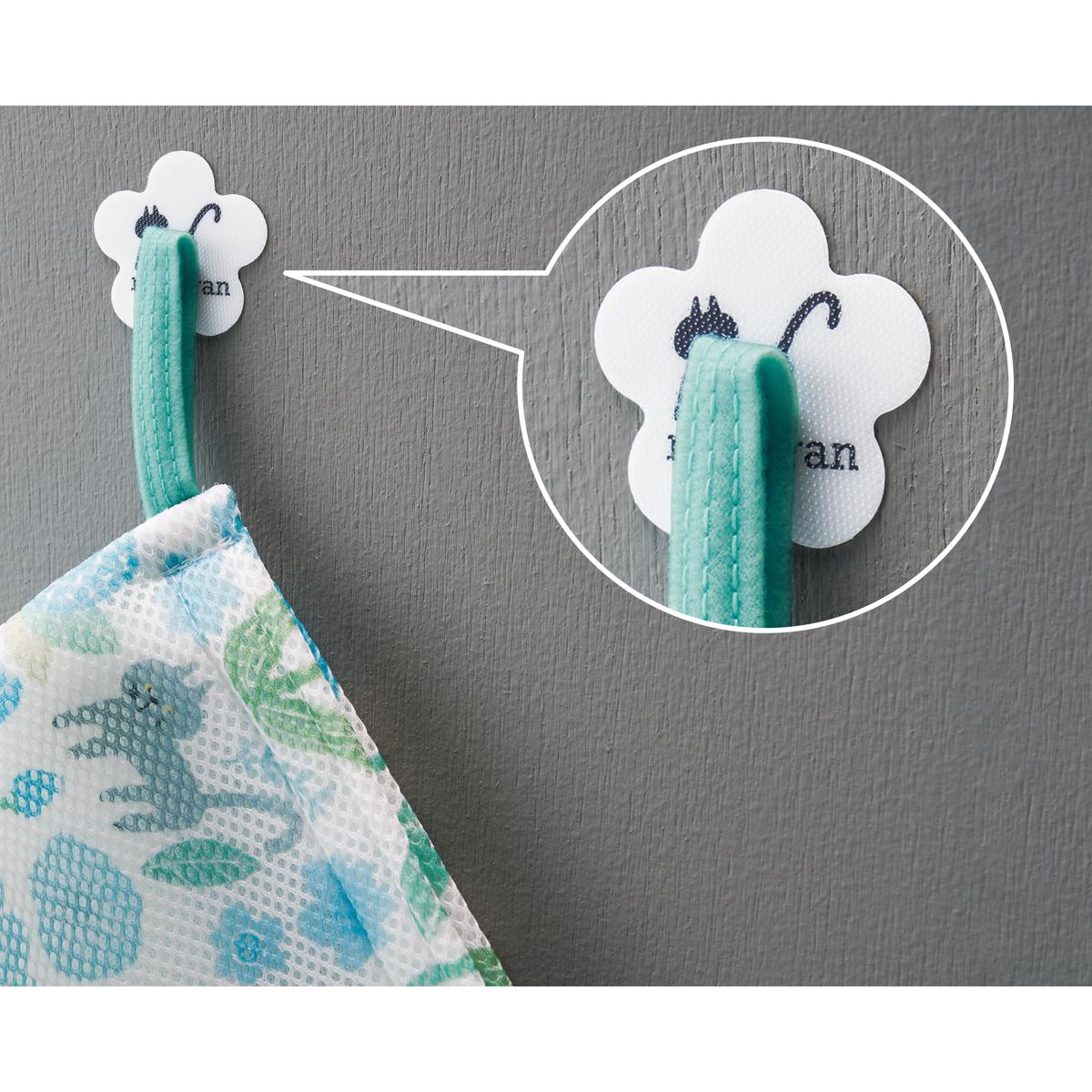 壁に貼るだけでくっつく便利なキャッチフック付き。