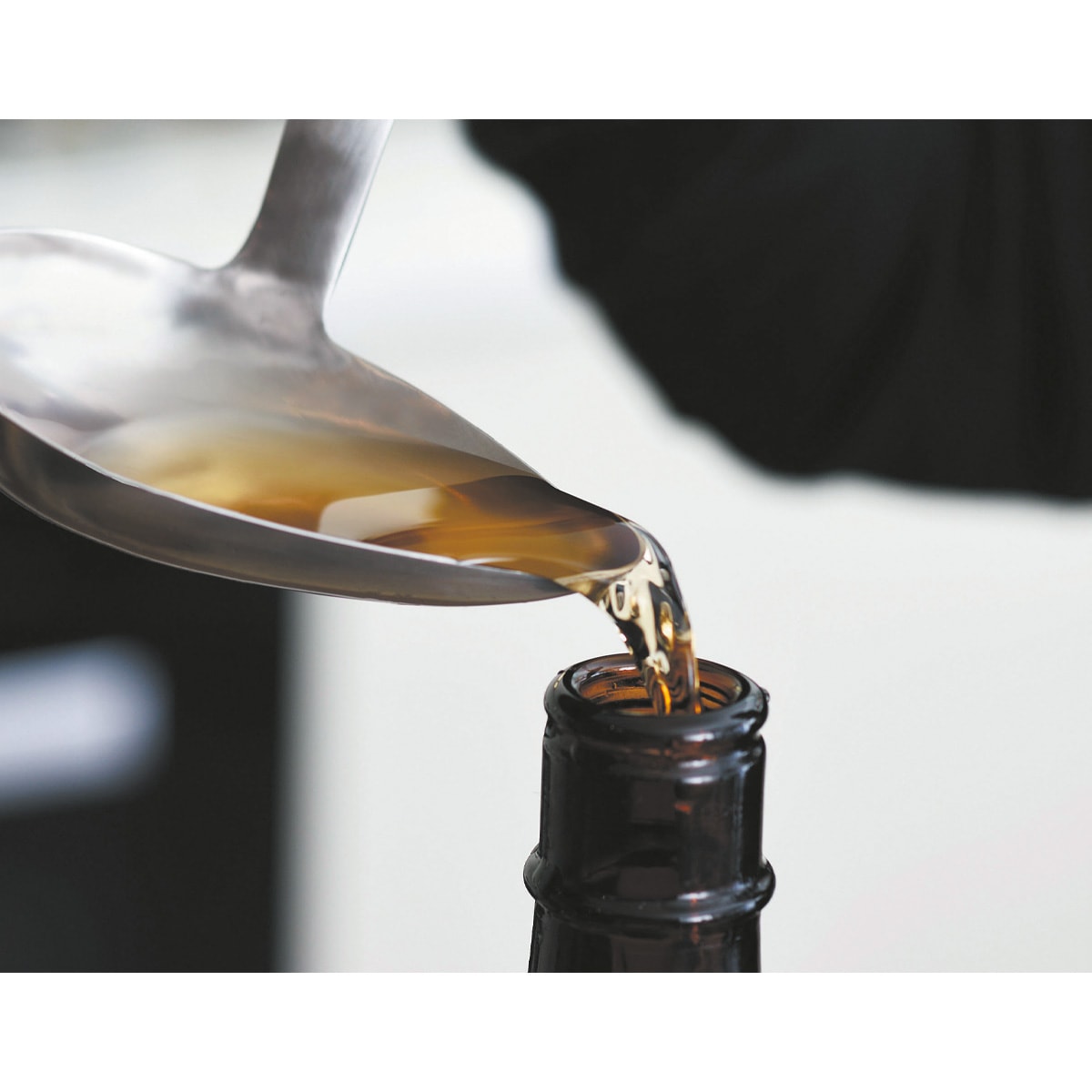 横おたまは小さい瓶の口にじょうごが無くても注げるくらい、注ぎやすさに特化した横口おたまです。