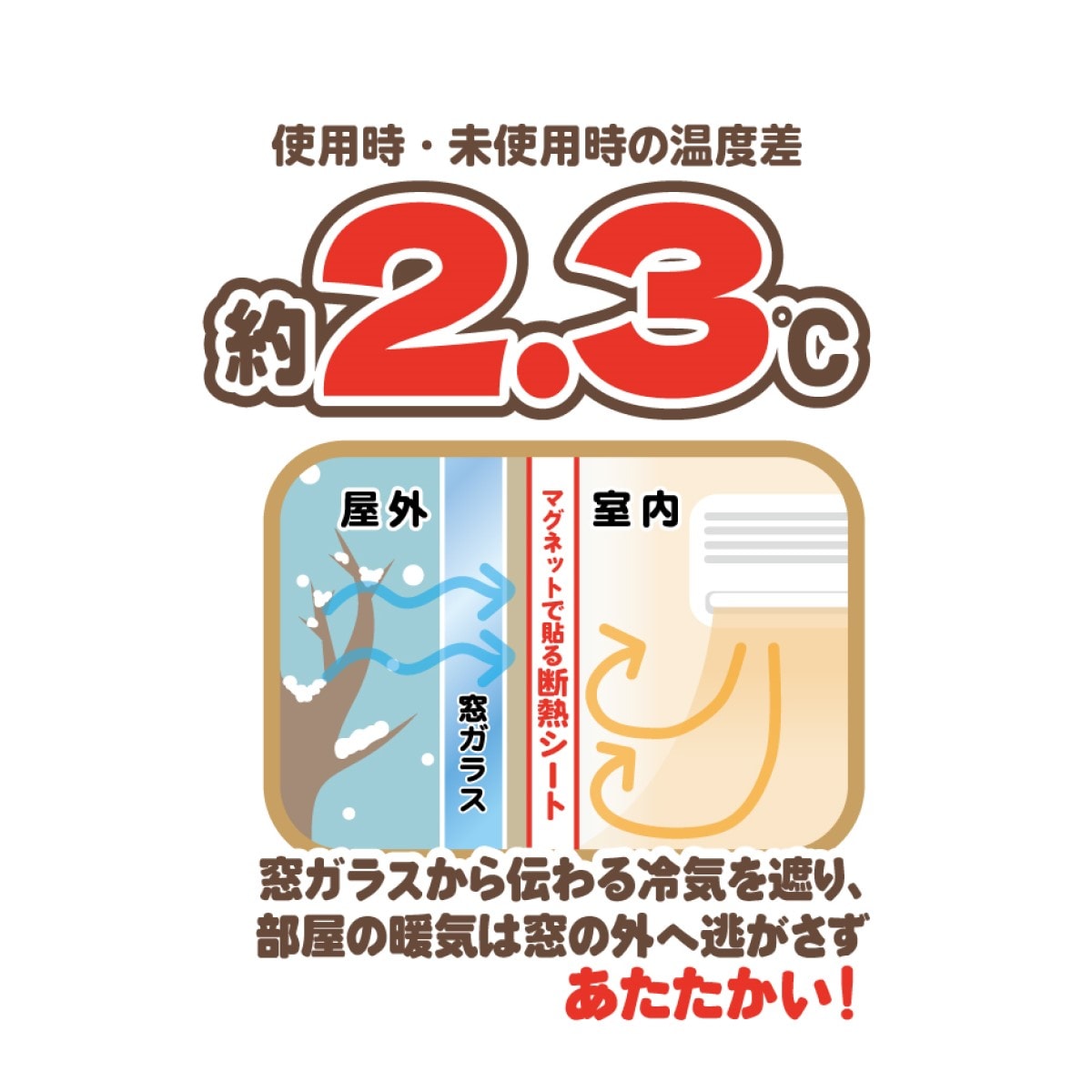 ■材質/ポリエチレン、マグネット、ゴム、鉄■サイズ(約cm)/90×45(1枚あたり)●セット内容/断熱シート×4、マグネット×18、鉄ゴム用補助シール(型板ガラス用)×4、鉄ゴム(90cm)×4●耐熱温度/約60℃●使用期間の目安/1シーズン(6カ月)※横幅90cmを超える窓ガラスには取り付けられません。●中国製