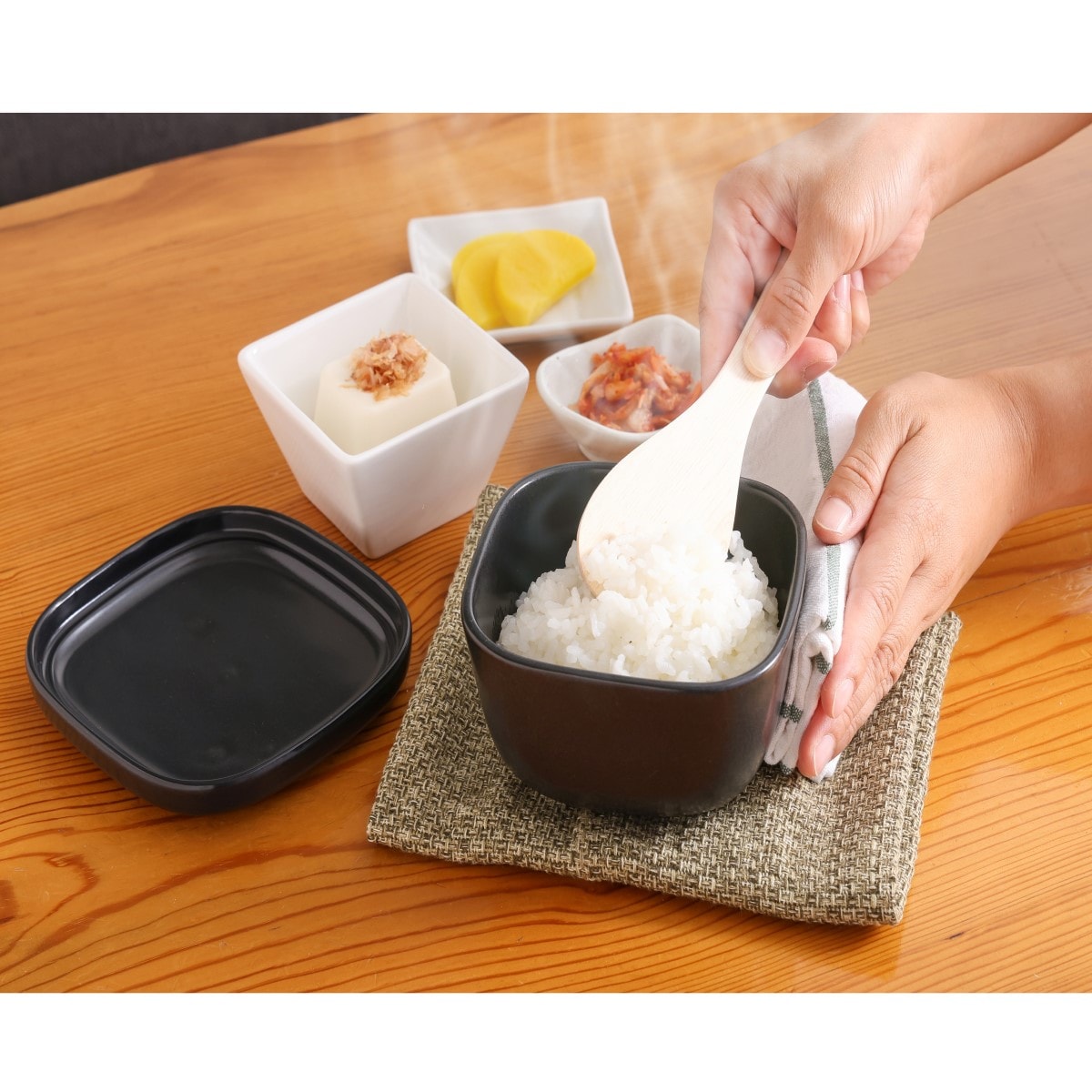 ■陶器 ■[サイズ(約cm)]A/蓋:13.2×13.2×2.2 本体:12×12×7.3 B/蓋:16.8×16.8×2.5 本体:15.2×15.2×9.2 ■[重量(約g)]A/500 B/835 ▼オーブン・直火使用不可●加熱時間(500W)/2合:約5~6分 1合:約3~4分 ※電子レンジの機種、ワット数などにより変わる場合がございます。 ●日本製※冷凍ご飯には使用できません。