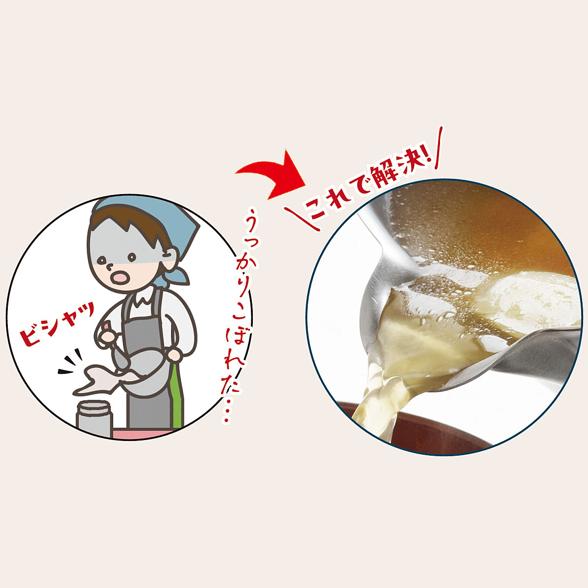 汁物、煮物の移し替えも液だれしないのでとても便利です。