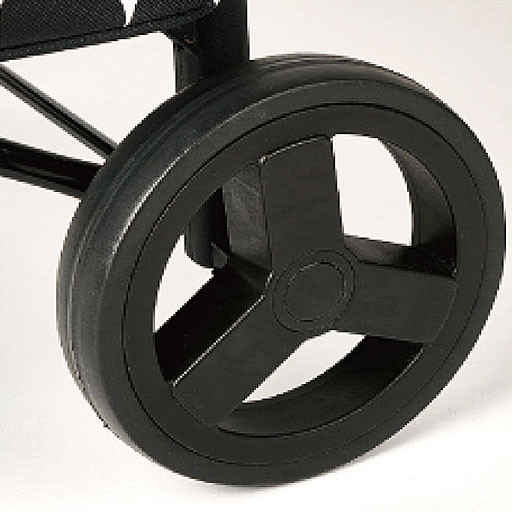 重い荷物を入れても安定走行でスムーズ 大型のタイヤを採用することで安定走行が可能に。