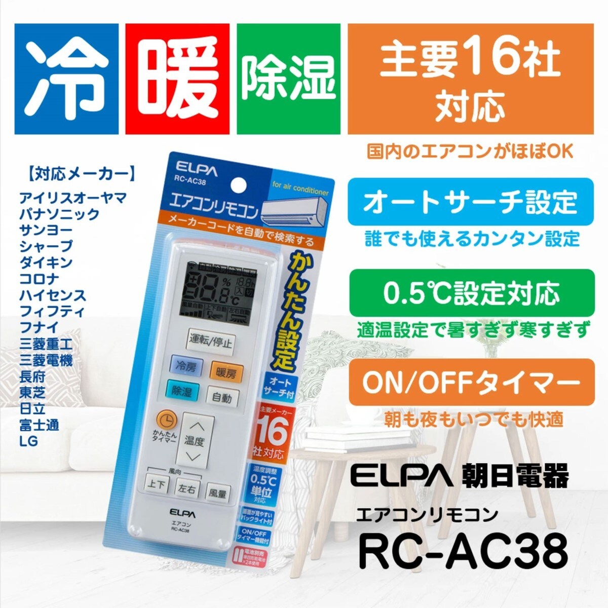 ELPA 主要メーカー16社対応 エアコンリモコン RC-AC38