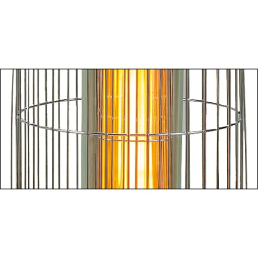 熱源のまわりに大型ガードを搭載。距離をかせいで、カーテンなどの障害物を触れにくくします。