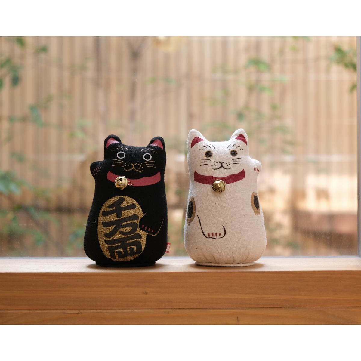 ブラック(裏)縁起物として古くから親しまれている招き猫の麻人形を手染めで優しい表情を実現しました。