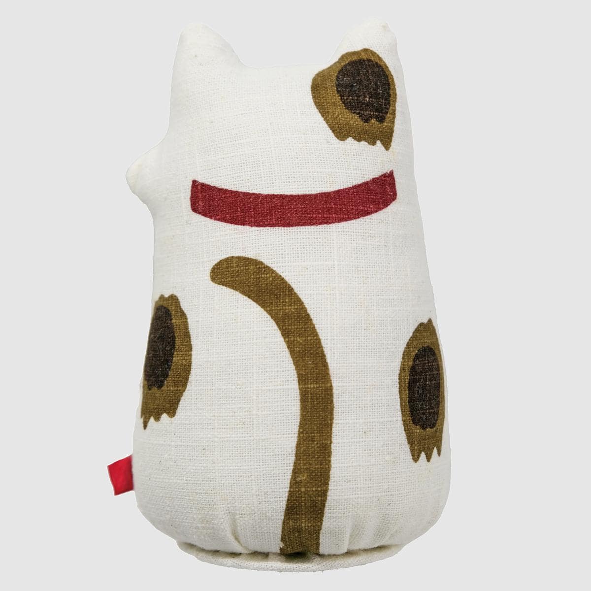 ホワイト(裏)縁起物として古くから親しまれている招き猫の麻人形を手染めで優しい表情を実現しました。