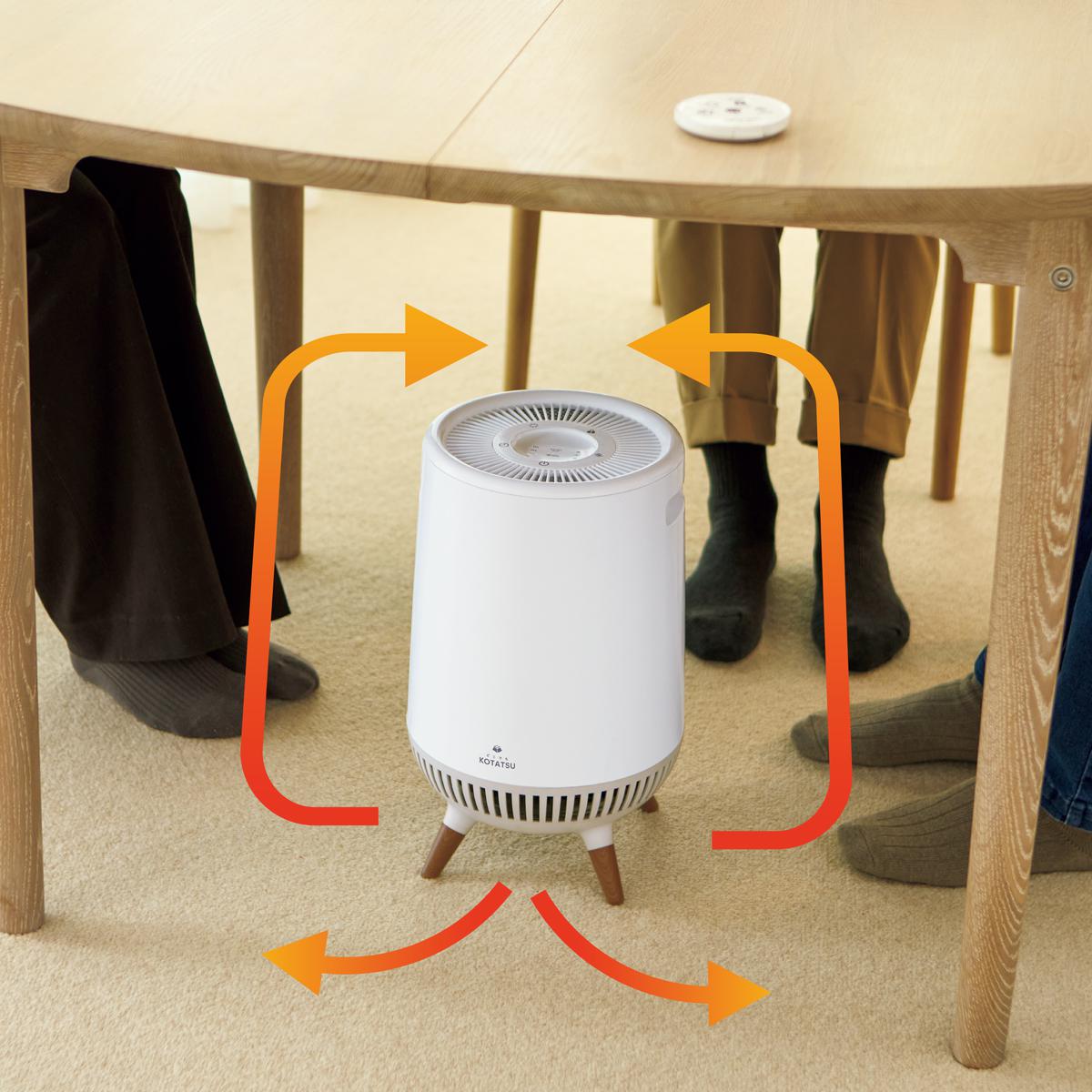 家族が集うダイニングテーブルが「布団がないコタツ」へ早変わり!底冷えするフローリングに温かさが広がります。○足元からワイドに広がる360°温風!本体下部の吹出口から、冷気がたまりやすい足元に360°温風が広がります。○操作しやすいスイッチ上部天面にスイッチをまとめて、楽に操作できます。取りはずしてリモコン操作もできて便利♪