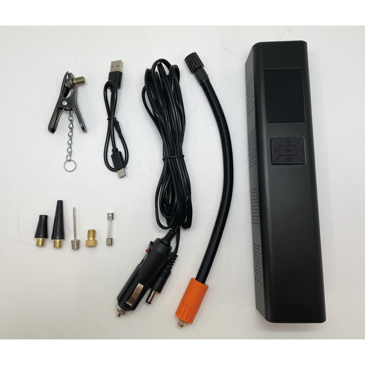 6,000mAhの大容量バッテリーで、タイヤにすると約10本分の空気入れに対応します。夜間作業に便利なLEDライト付。