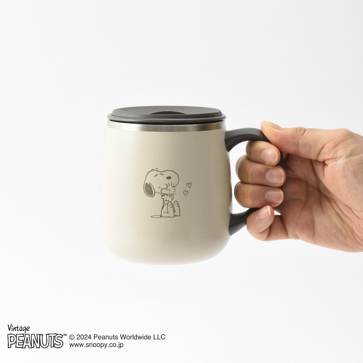 大人かわいいスヌーピーがポイント。適温をキープするステンレスマグ!
