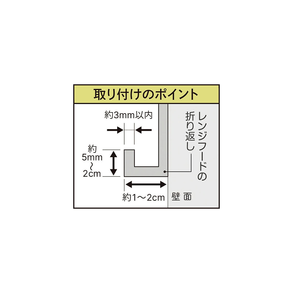 折り返しがあり、イラスト指定寸法のレンジフードにご使用いただけます。
