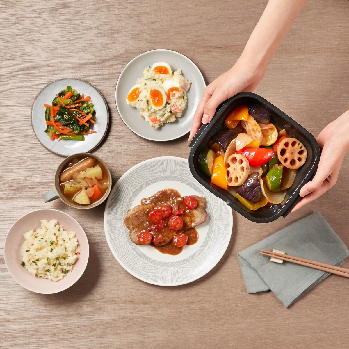 メインから副菜まで電子レンジで簡単に作れます。火を使わないので、夏の暑い季節や火の取り扱いに不安のある方にもおすすめ。保存容器にもなるので洗い物も減らせます。〇独自構造でスピードクッキング高温の蒸気がドーム型のカプセル内を循環することで、短時間でムラなく火を通し、美味しく仕上げます。