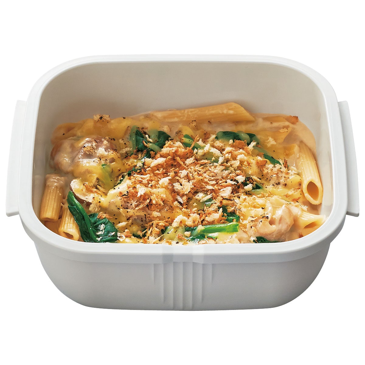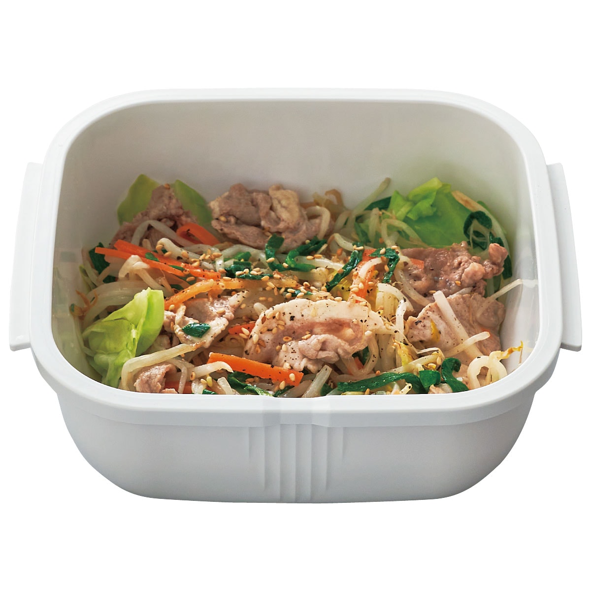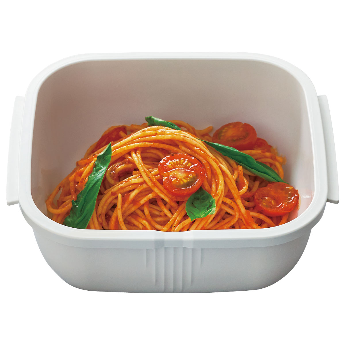 ■[本体・スクエアディッシュ・マルチプレート]スチロール樹脂 [フタ・コランダー]ポリプロピレン ■[サイズ(約cm)]本体(フタ含む)/18.8×16.7×8.9 コランダー/15.1×14.1×7.3 マルチプレート/13×12×1 スクエアディッシュ/19.9×18×3.2 ■[重量(約g)]本体(フタ含む)/161 コランダー/70 マルチプレート/22 スクエアディッシュ/118 ●耐熱温度/230℃(フタ・コランダーは150℃) ●耐冷温度/-40℃ ●対応可能熱源/電子レンジ、オーブン(フタ・コランダー不可) ※電子レンジ700Wまで対応 ▼オーブントースター・グリル機能不可●日本製