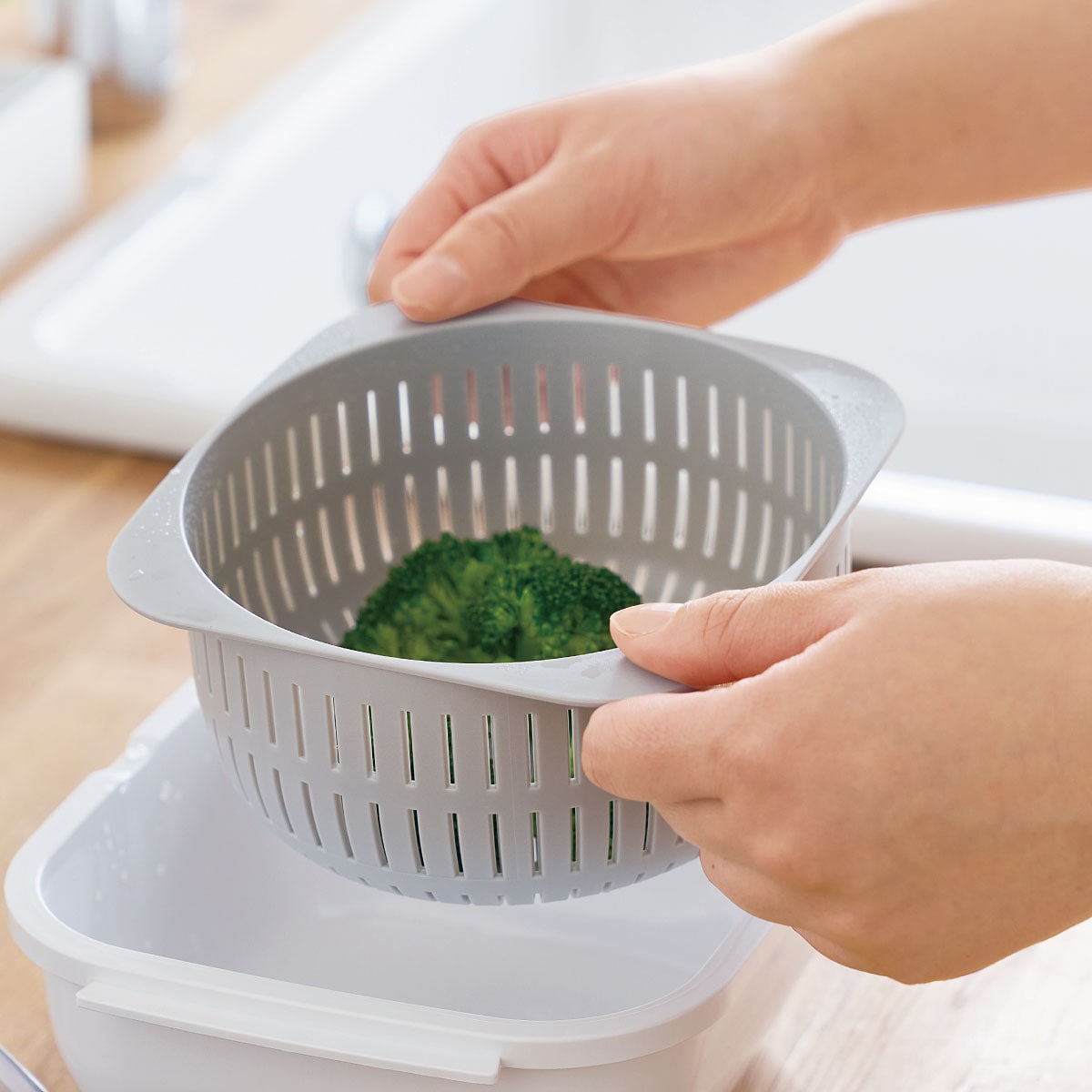 コランダー 葉野菜を水に浸して洗ったり、パスタやうどんなどの麺を湯切りする時に便利。