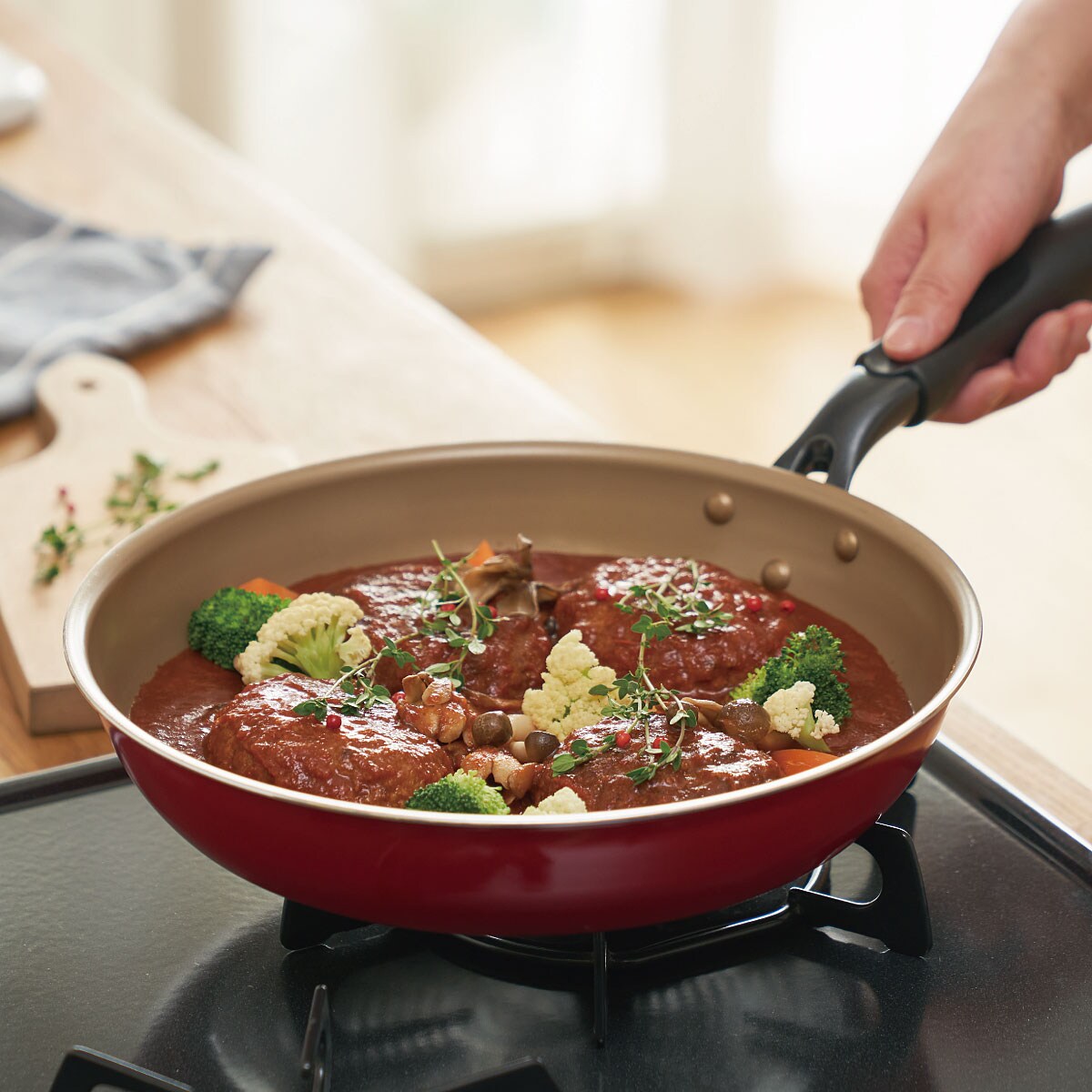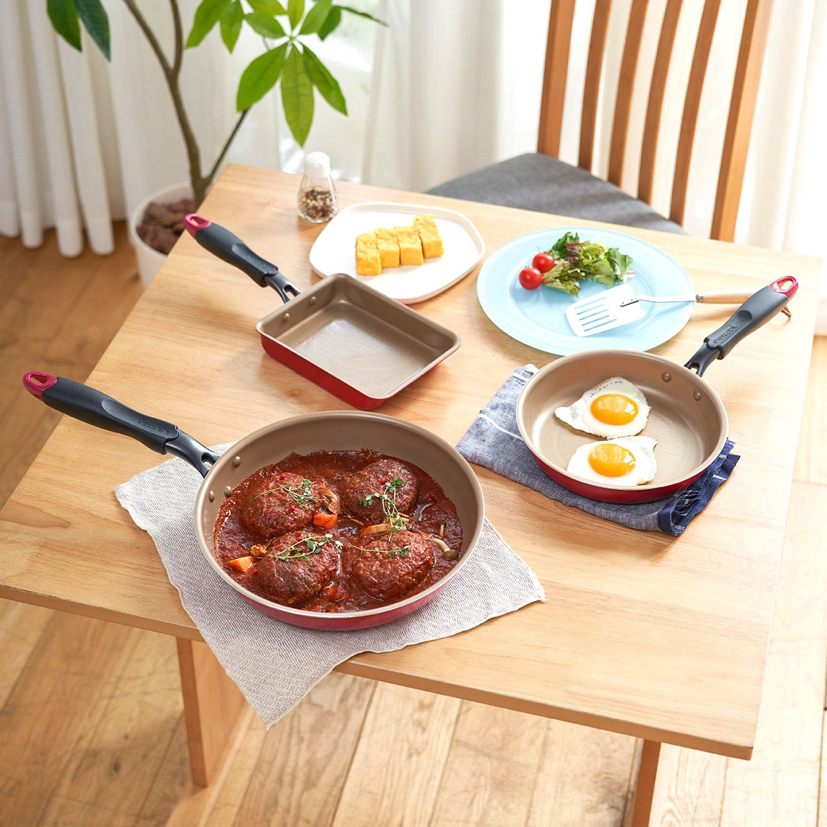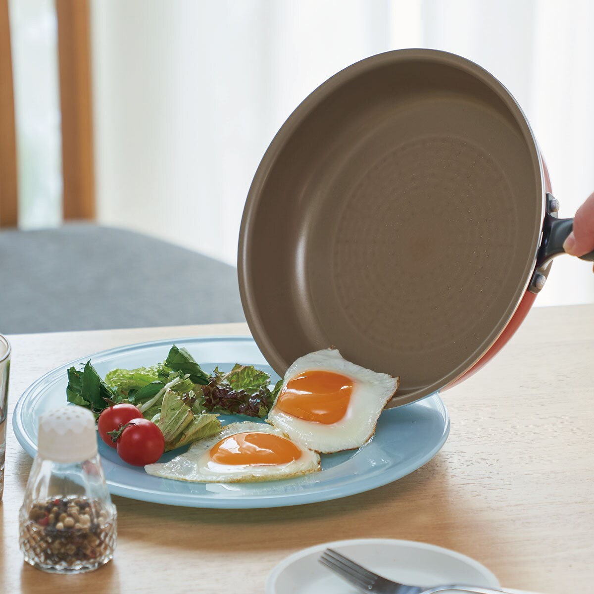 D(26cm) 「こびりつきにくい」「お手入れ簡単」なフライパン。独自の構造で快適ツルすべが長続き。焼き料理・煮込み料理や蒸し料理までマルチにこなす1台です。IHにも使えます。