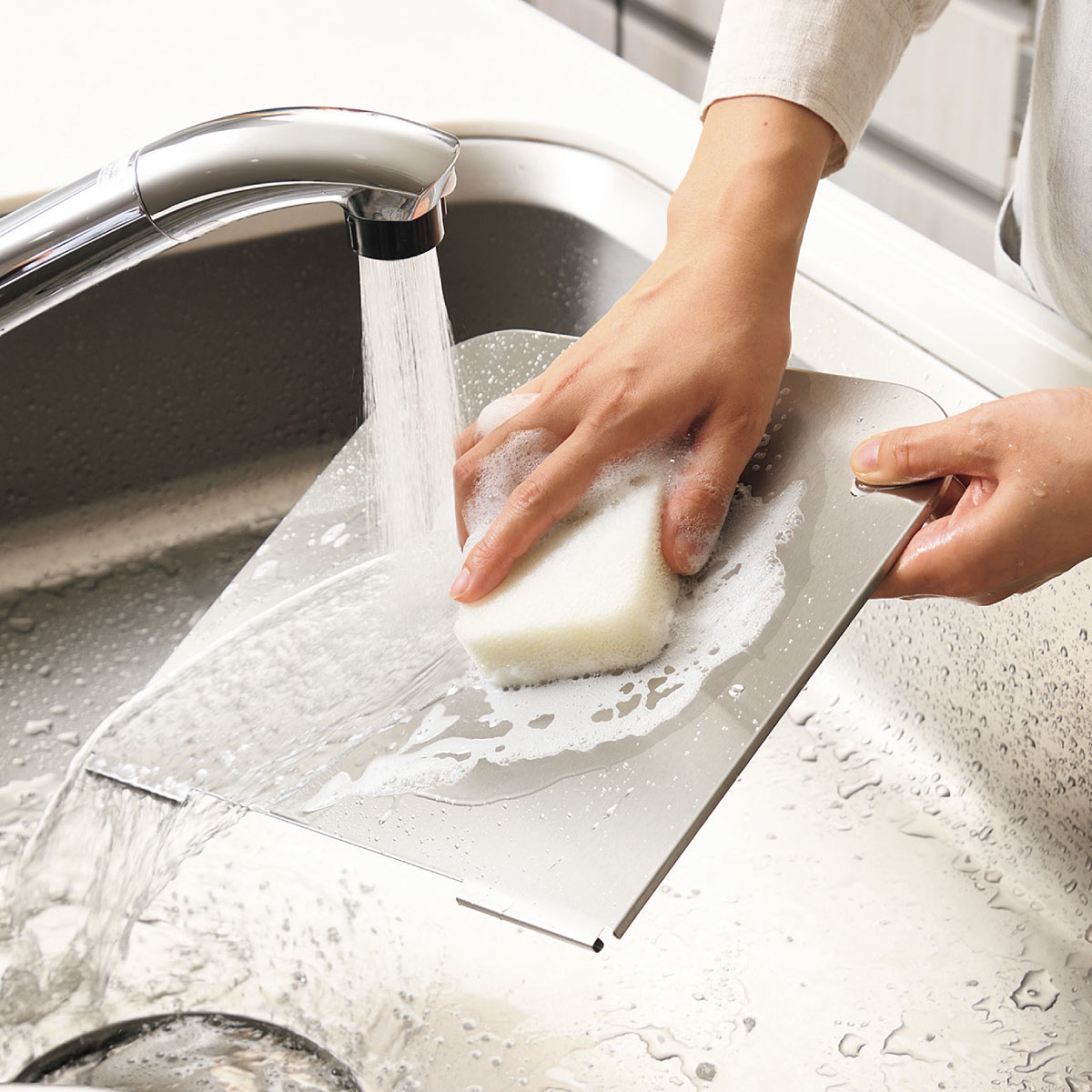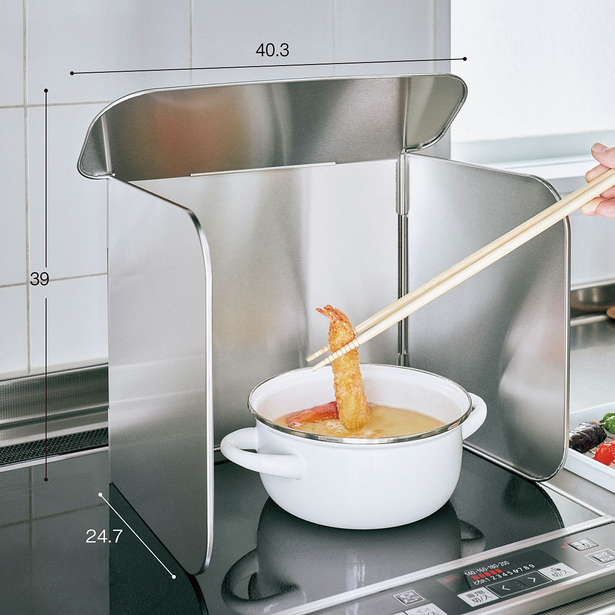 丈夫でさびにくいステンレス製。耐久性があり、汚れが落としやすい。分解すれば、食洗機でも洗えます。コンロの風除けとしても使えるので、アウトドアでも。