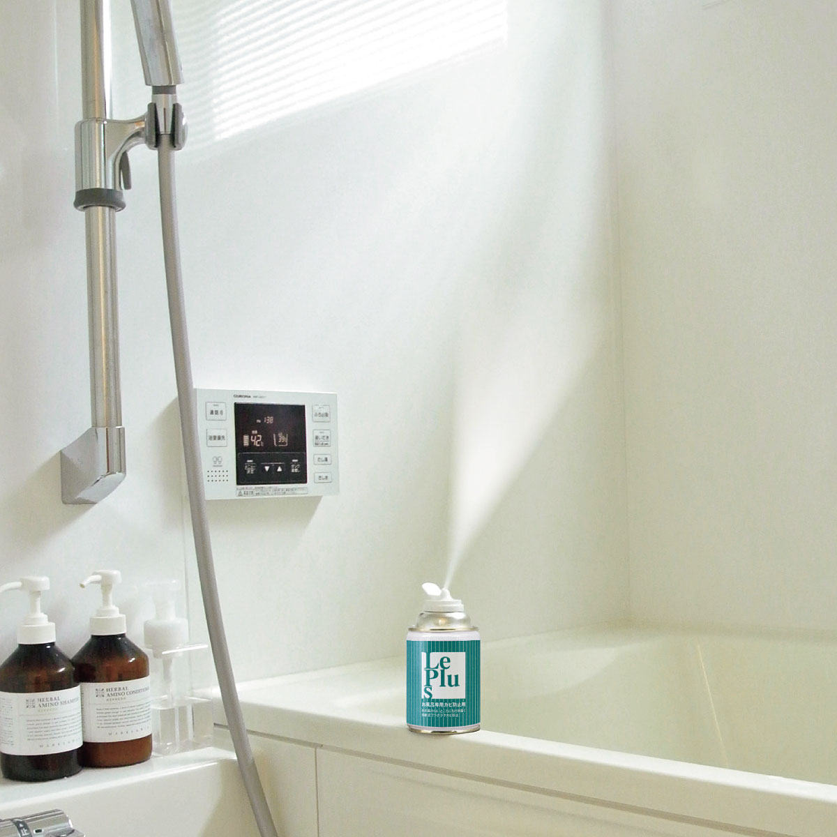 お風呂掃除の際にカチッと押すだけで3ヵ月防カビ!カビ・菌を殺すのではなく「生きられない環境」へ。ミストが天井や浴室乾燥機内まで行きわたります。