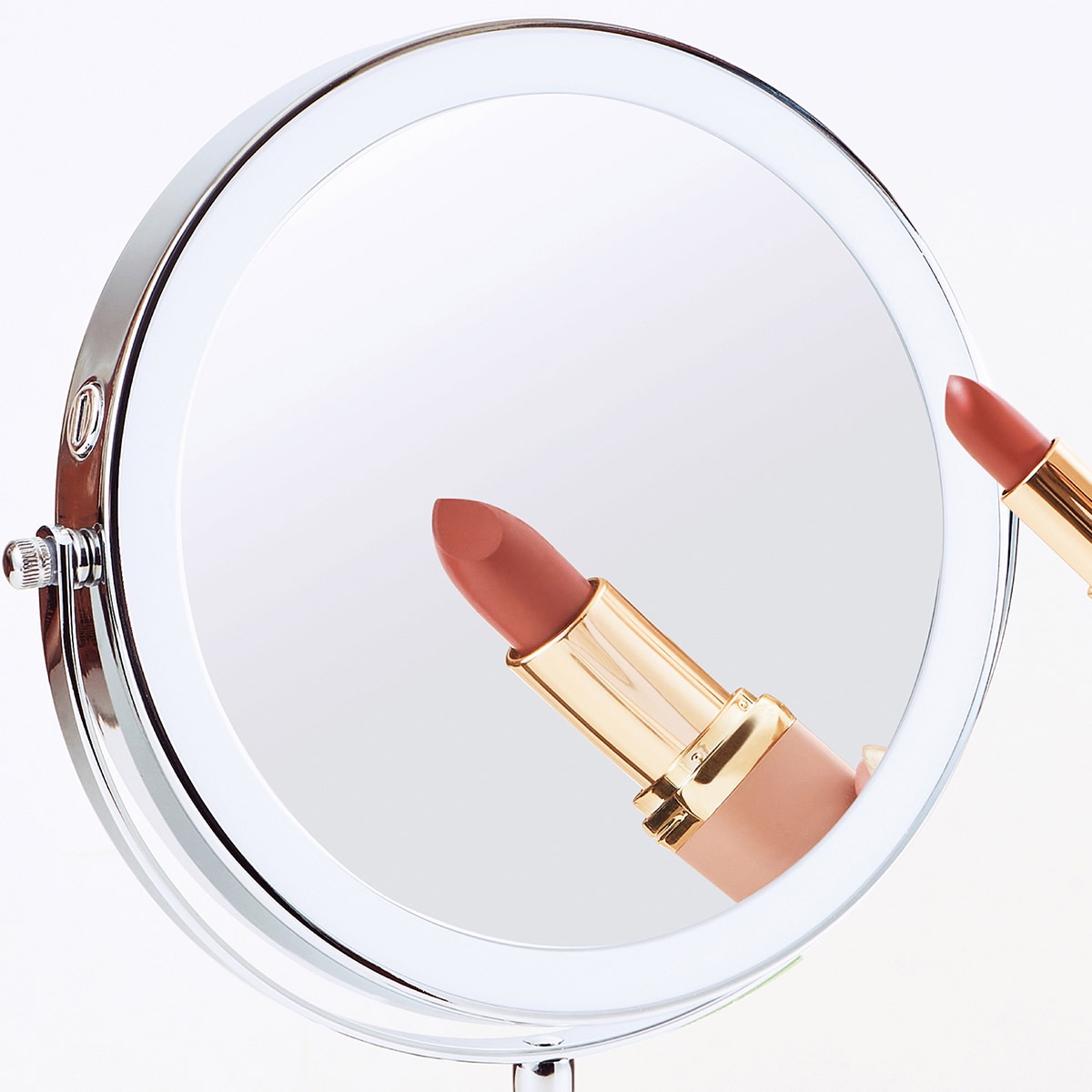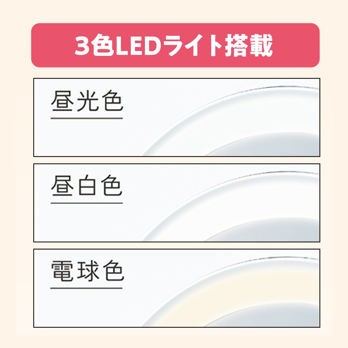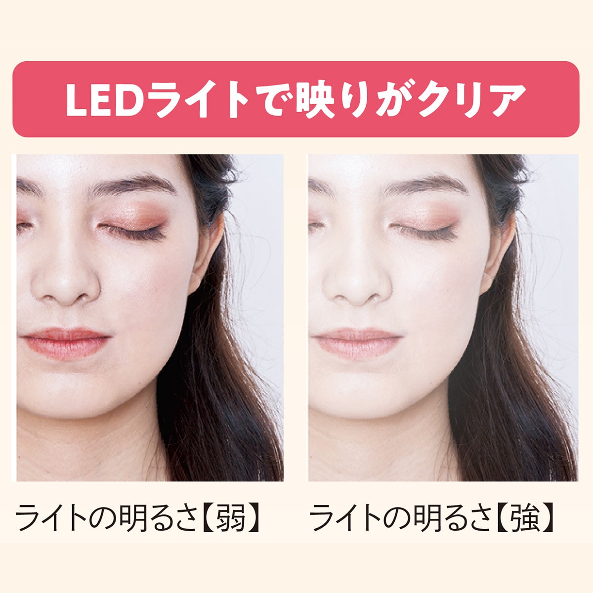 鏡まわりのLEDライトがお肌を均一に照らし、暗いお部屋でもくっきり見え、メイクがしやすくなります。