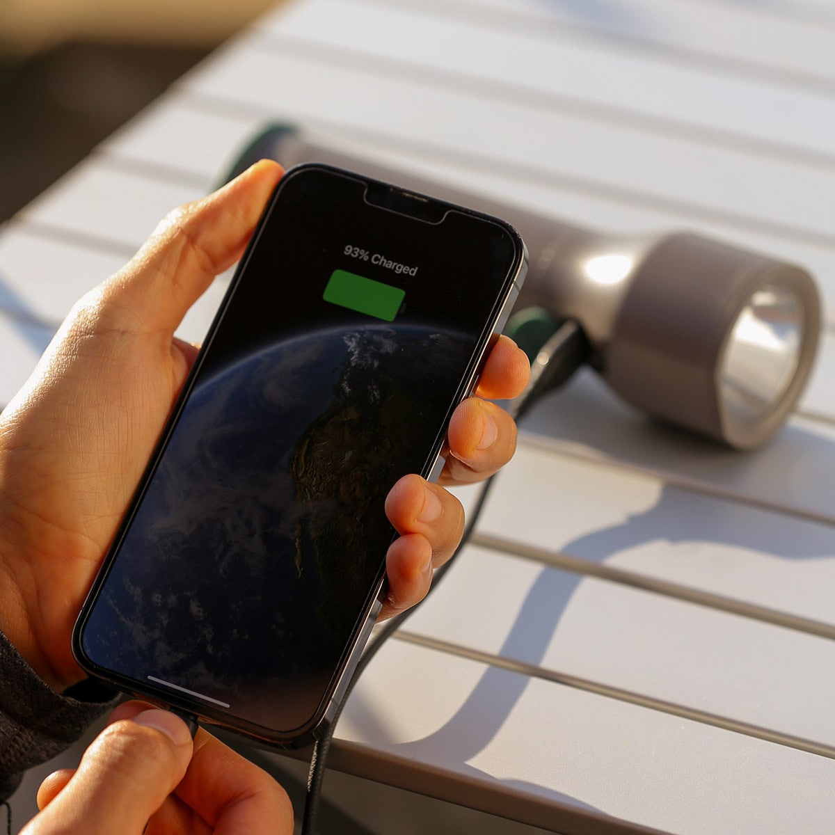 便利な3WAY電源(ソーラー充電、USB充電、乾電池)!スマホ充電も可能!