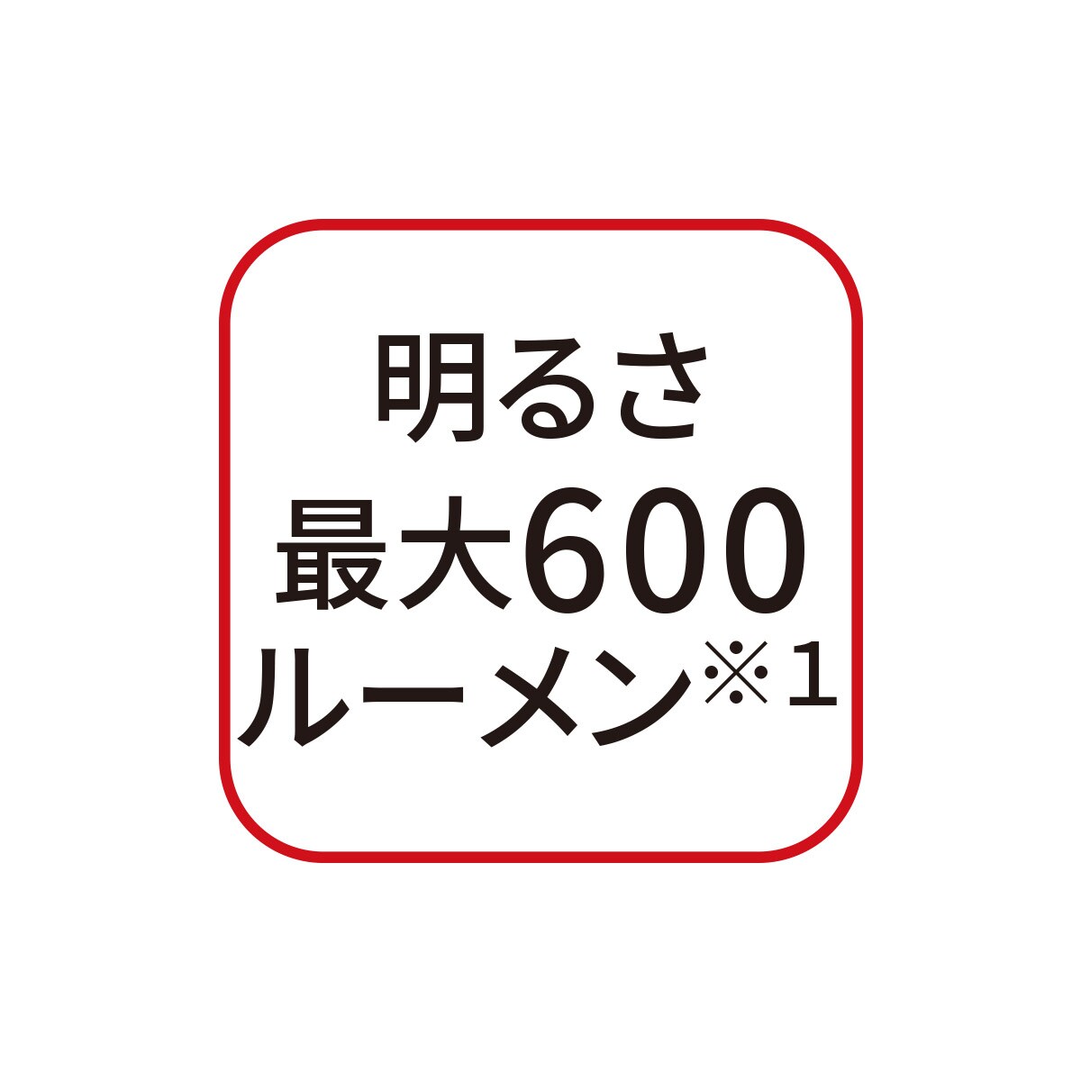 明るさ最大600ルーメン※1 ※1. リチウムイオン電池使用時、ハイモード時