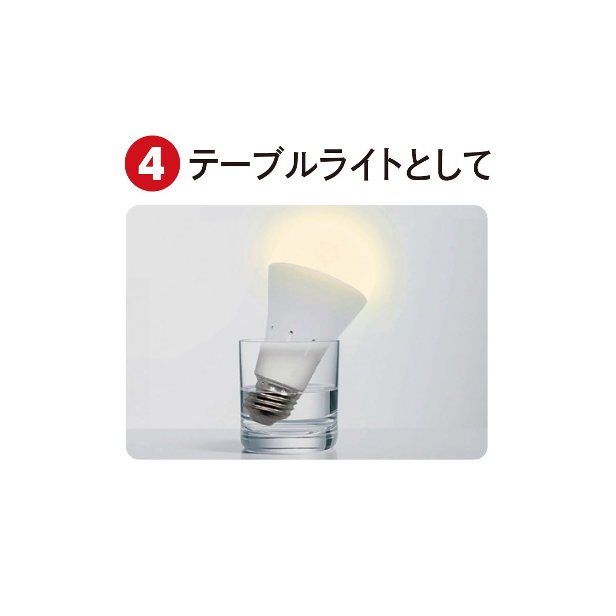 (4)テーブルライトとして 口金部分に水や湿った布を触れさせて点灯。