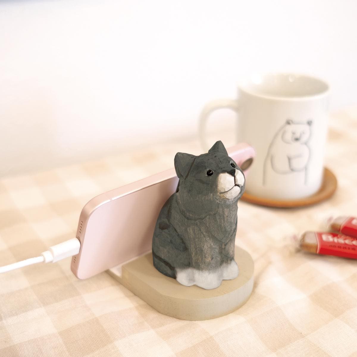 背中でスマホを支えつつ、眼鏡やサングラスも収納してくれる1人2役な動物たち。就寝前の枕元やお仕事のデスク周り、お料理中のキッチンなど、様々なシーンで大活躍。木彫りのナチュラルな表情はどんなインテリアにも馴染みます。スマホを横向きに立てかければ、充電中もお使いいただけます。