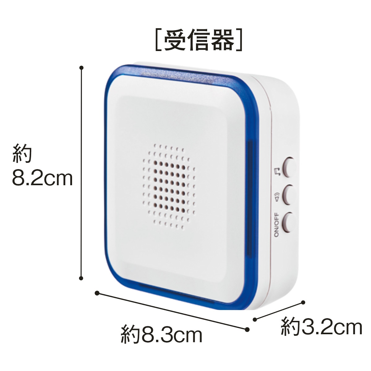 ■サイズ(約cm)/[受信器]幅8.3×奥行3.2×高さ8.2 [送信器]直径7.5×高さ4.2(吸盤含まず) ■重量/[受信器]約81g [送信器]約89g(吸盤含まず) ■電源/AC100V ■消費電力/2W ●音量/約80dB/50cm(音量最大のとき)●中国製【保証書付1年間】 【交換・返品不可】※商品の特性上、交換・返品はお受けできません