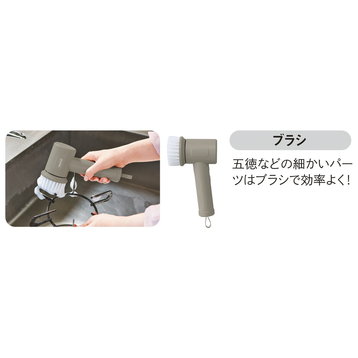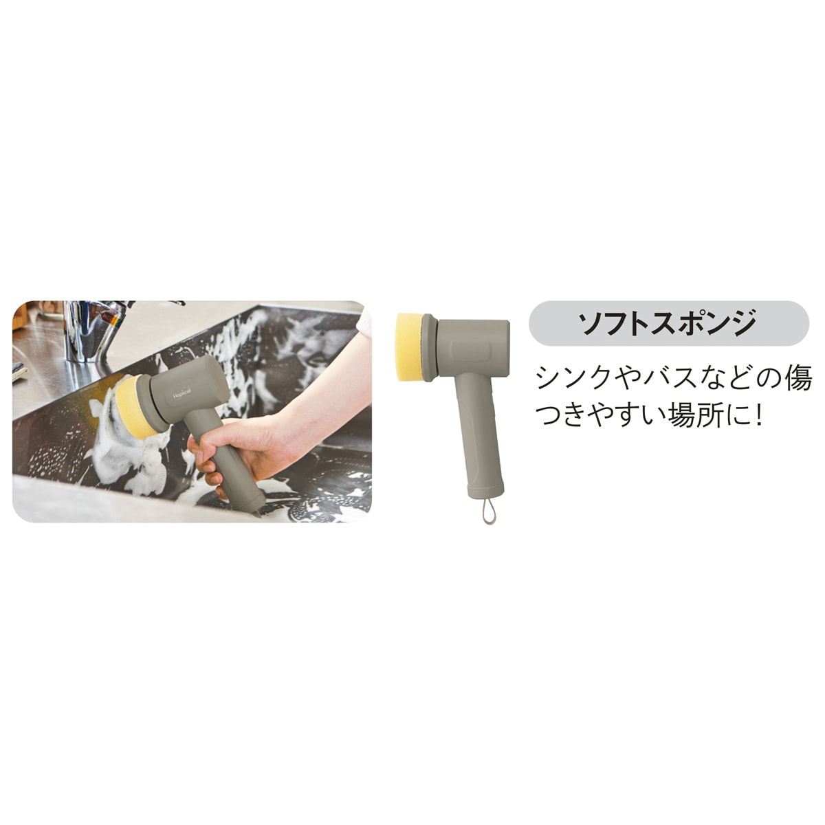 さわりたくない排水口もらくらく!〈アタッチメントは簡単に交換できる!〉○ロングブラシ排水口などの手の届きにくい場所に!○ブラシ五徳などの細かいパーツはブラシで効率よく!○ソフトスポンジシンクやバスなどの傷つきやすい場所に!○ハードスポンジ頑固な油汚れ、水あか汚れに!