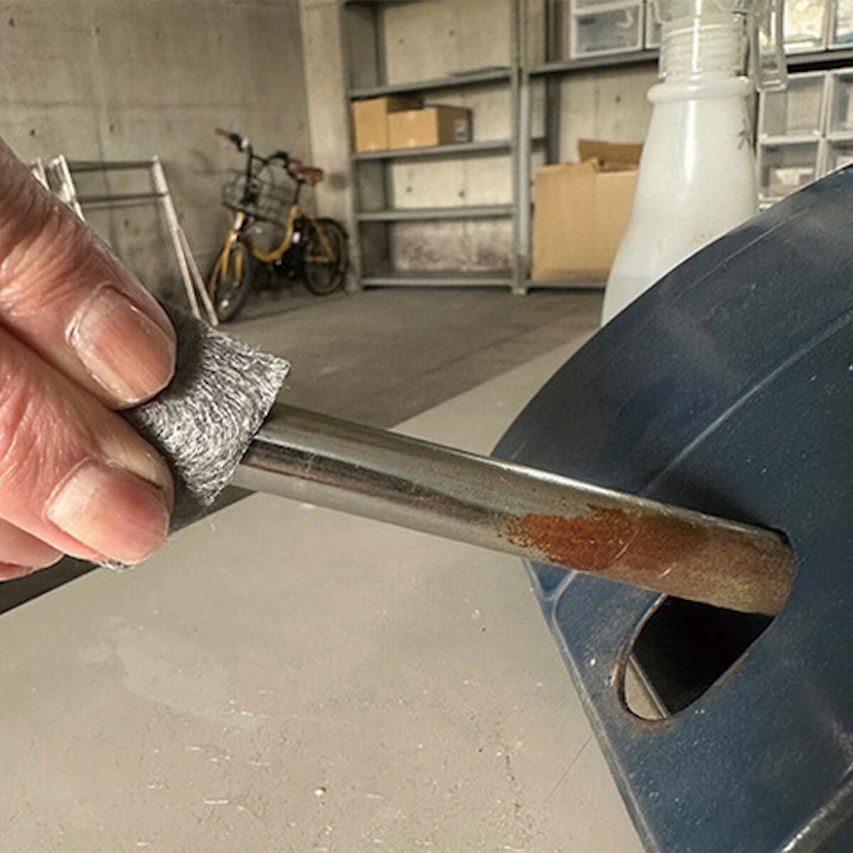 (3)サビている部分を軽く擦ります