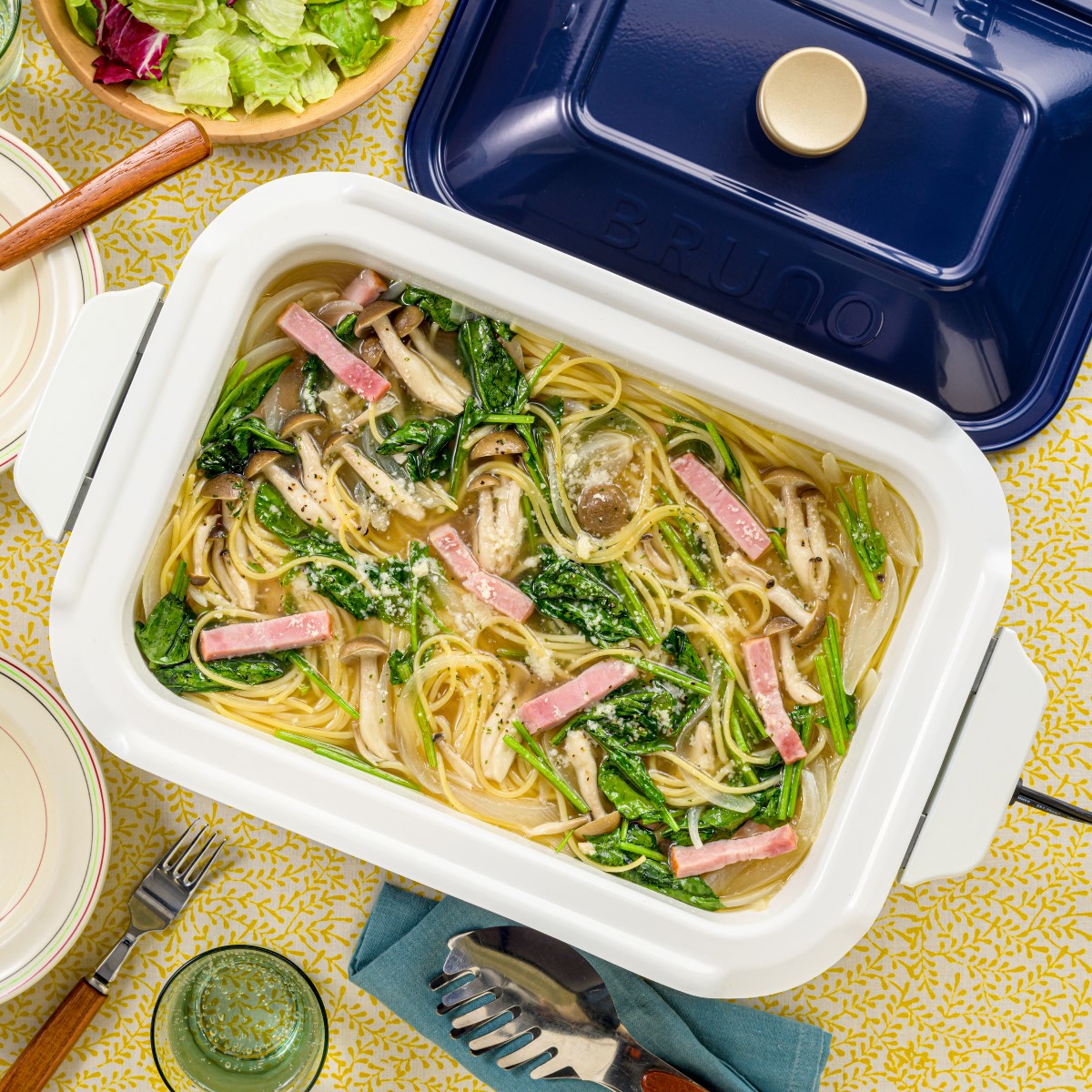 BRUNOコンパクトホットプレートにセットして、鍋ものなどが楽しめる追加オプションです。内側がセラミックコート加工なので汚れがつきにくいのもうれしいポイント。オールシーズンお使いいただけます。
