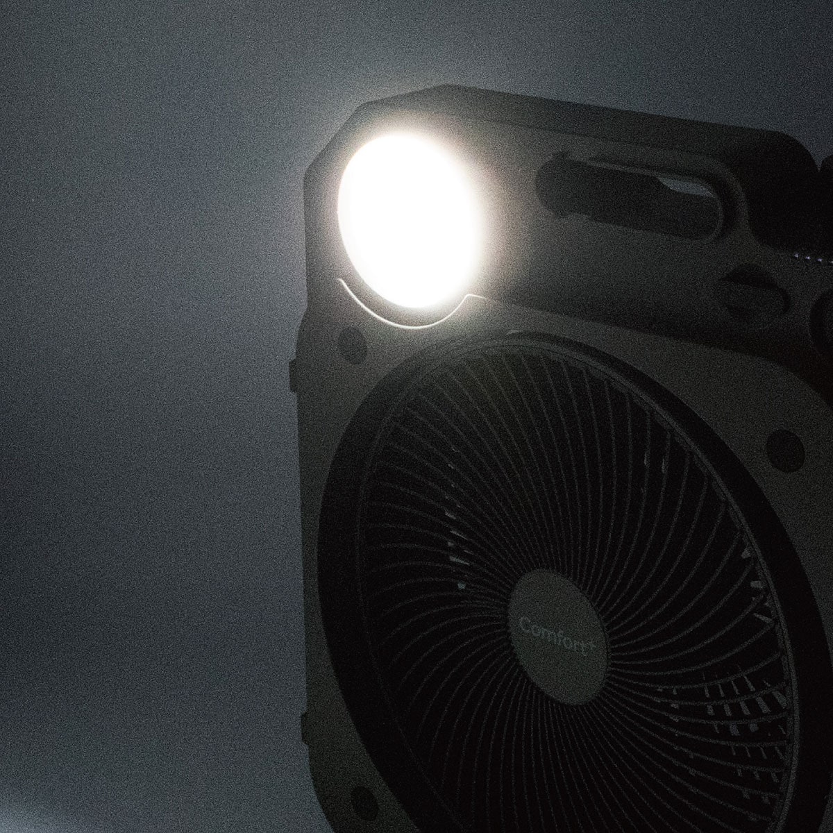 スマートフォンの充電もできる!薄型送風扇持ち運びもラクラク!〇首振り約90°〇LEDライト点灯時明るさ3段階&SOSモード〇充電式&スリムコンパクト