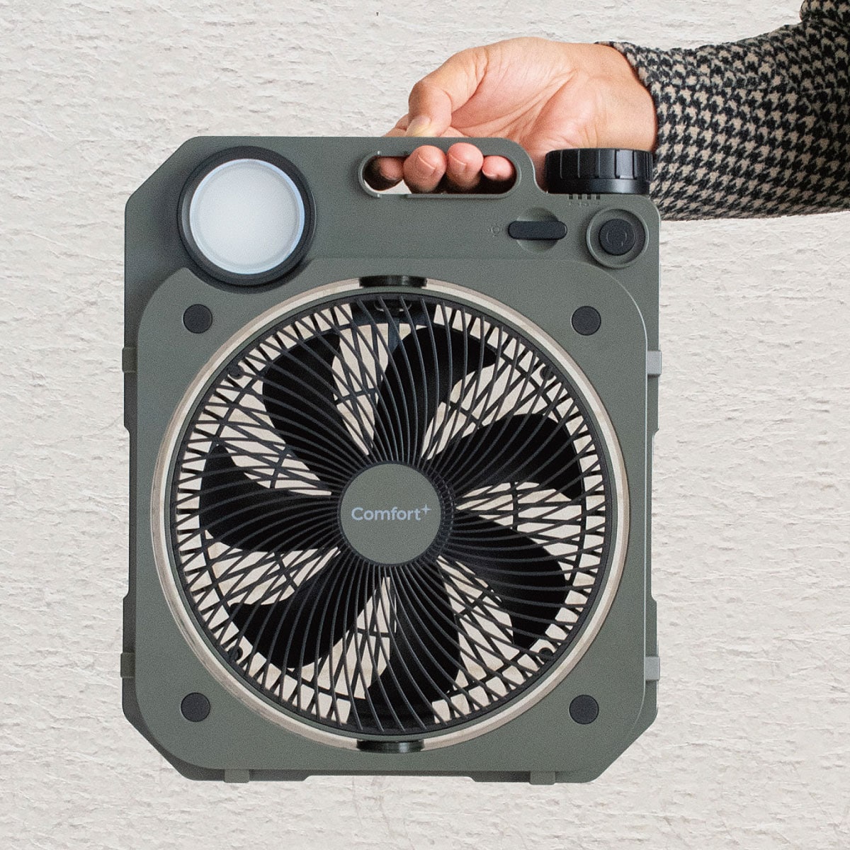 ■サイズ(約cm)/幅23.7×奥行7.5×高さ28.5 ■重量/約1120g ■電源/リチウムイオン電池:29.6Wh(3.7V/8000mAh) ■コード長/約1m(※付属のUSBケーブル) ●充電時間/約5時間 ●動作時間/送風:約4~37時間 LEDライト:約20~80時間 ●付属品/USBケーブル、ACアダプタ ※本製品は防水ではありません。 [航空便不可]●中国製【保証書付1年間】 【交換・返品不可】