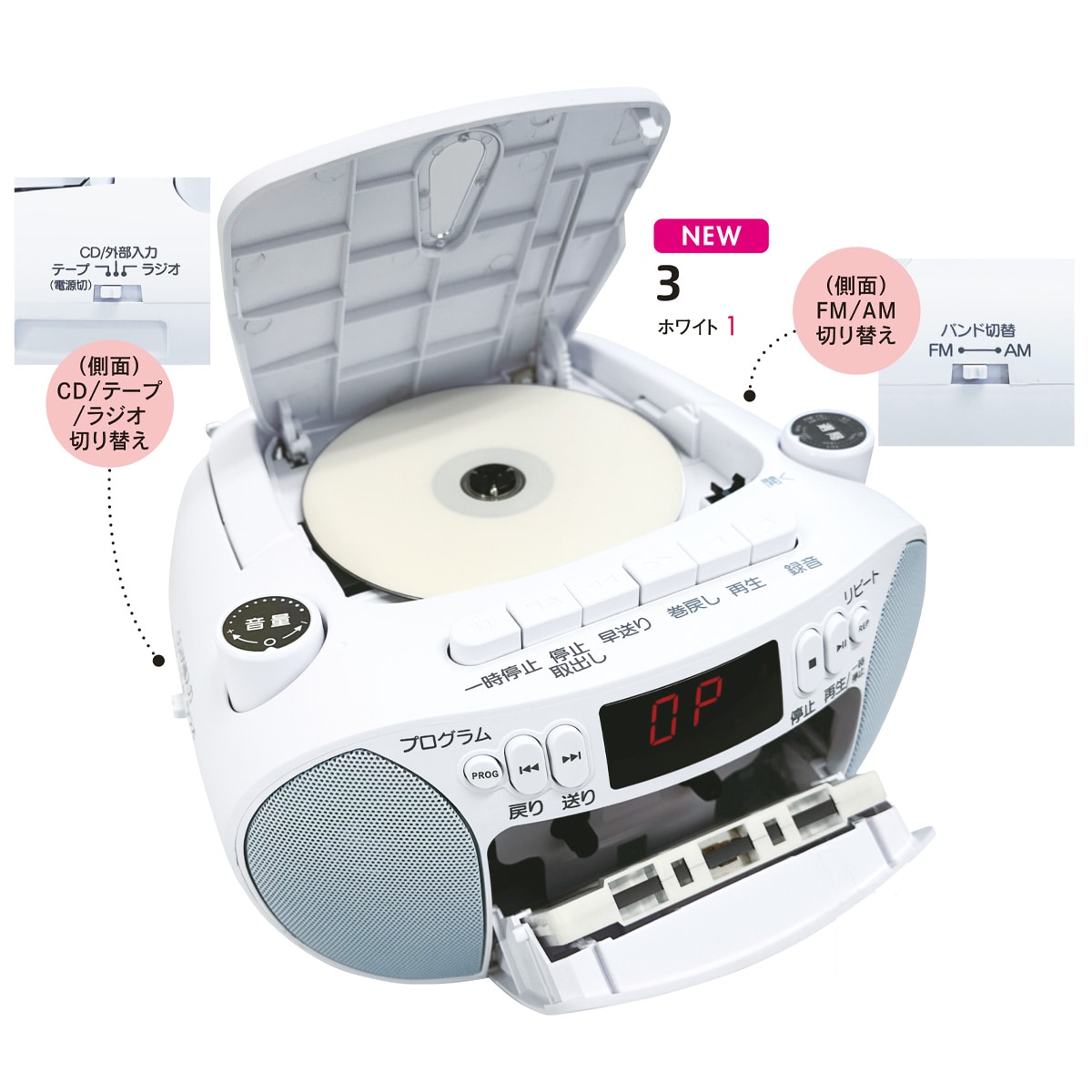CD再 生 ラジオ(AM/ワイドFM) カセットテープ録音再生