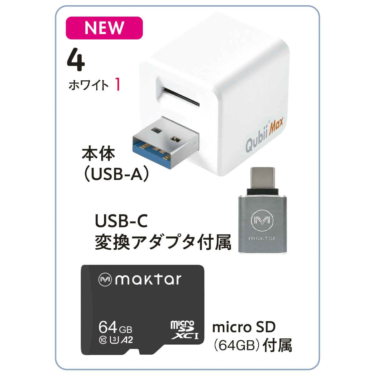 充電中に携帯データをバックアップできるデータ転送器 QubiiMax microSD(64GB)セット